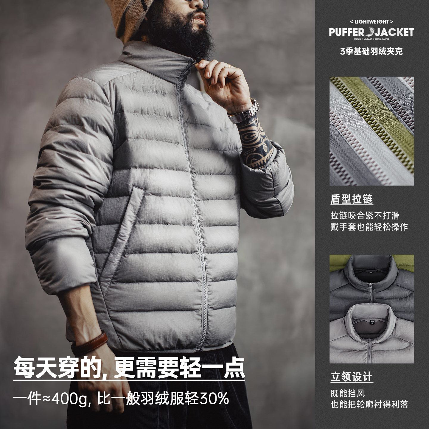 马登工装美式超轻薄排骨白鸭绒羽绒服夹克外套内搭短款内胆男秋冬
