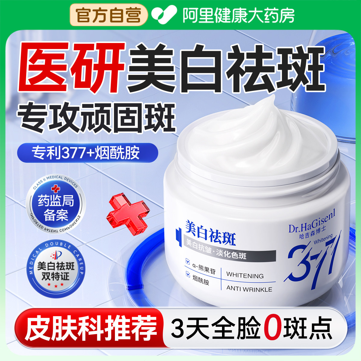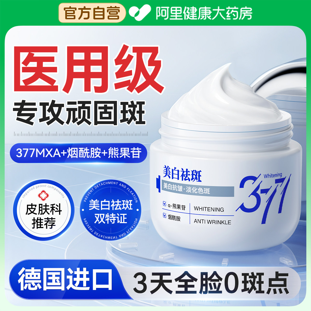 377美白祛斑面霜烟酰胺淡化色斑晒老年斑黄褐斑提亮暗沉肤色正品