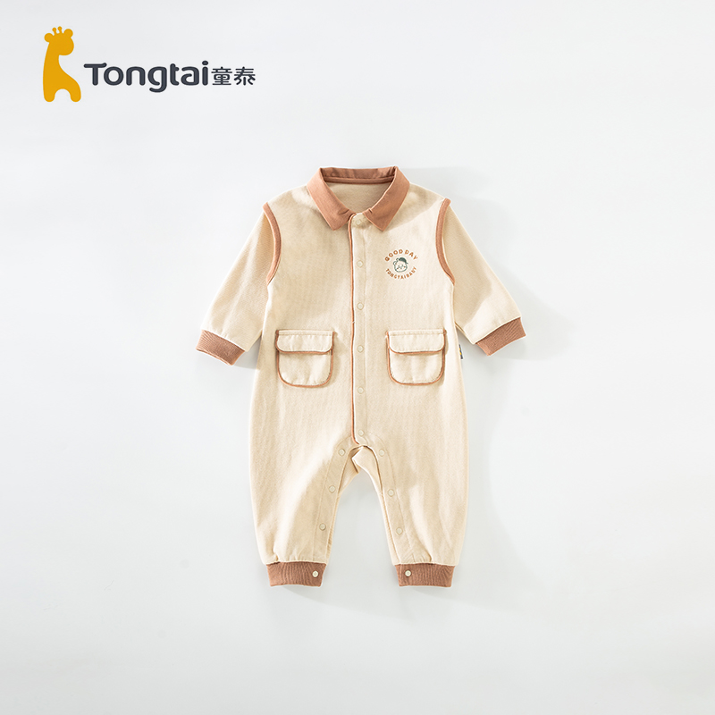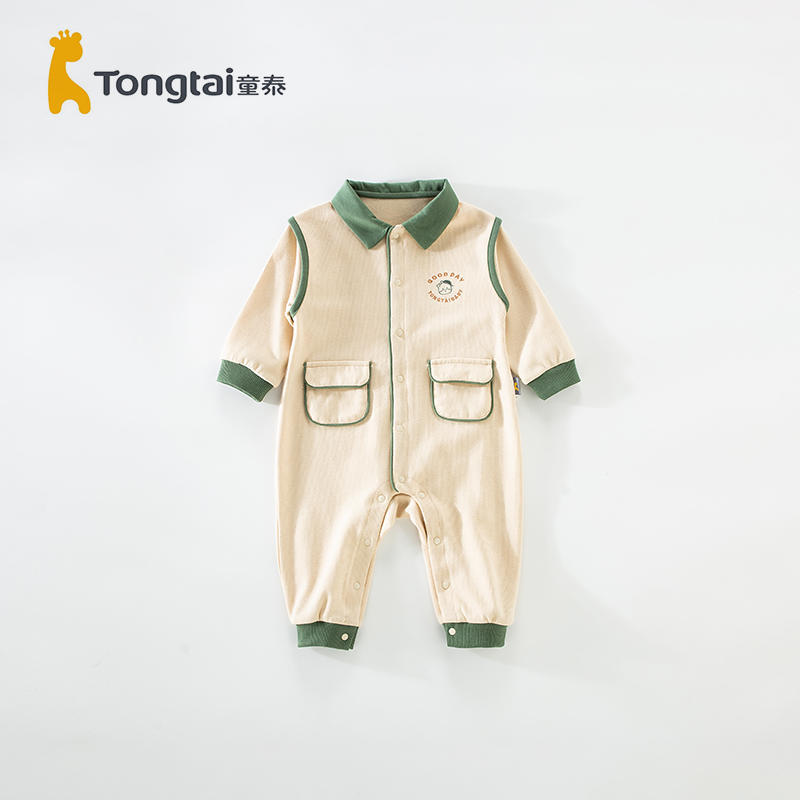 童泰婴儿连体衣春秋款男童爬爬服新生儿外出服男宝宝春装纯棉A类