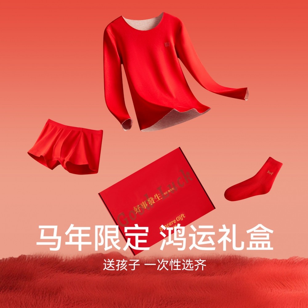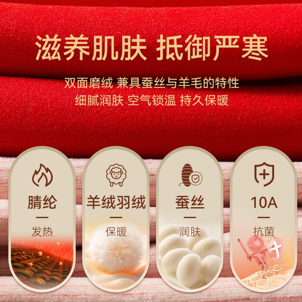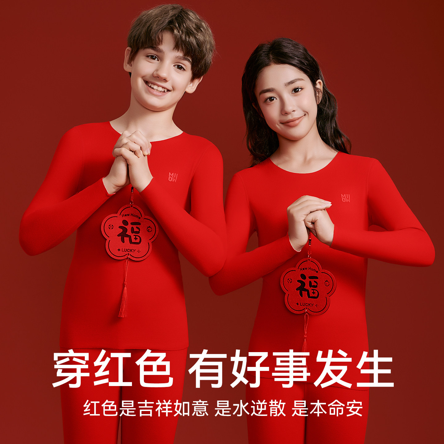 猫人儿童本命年保暖内衣套装男童大红色羊绒蚕丝秋衣秋裤女童马年