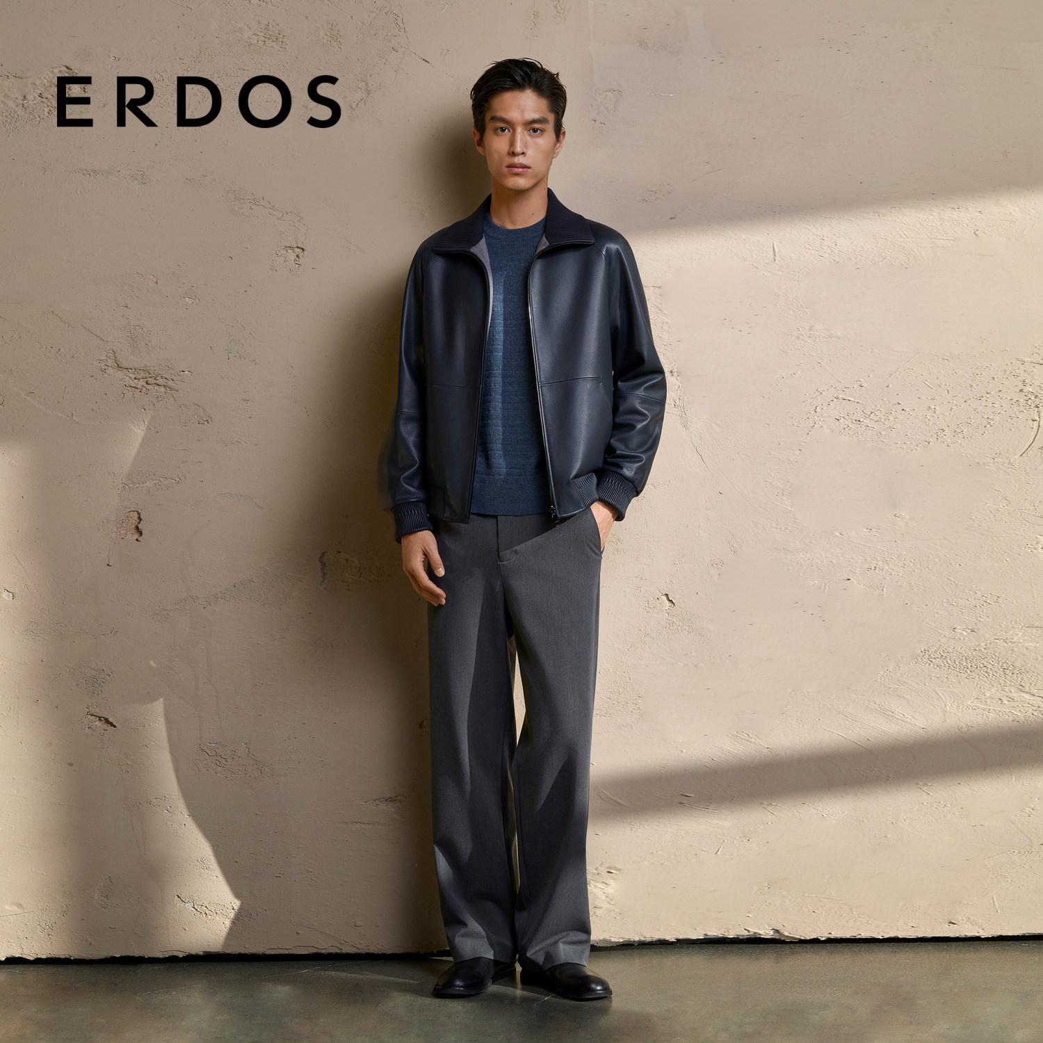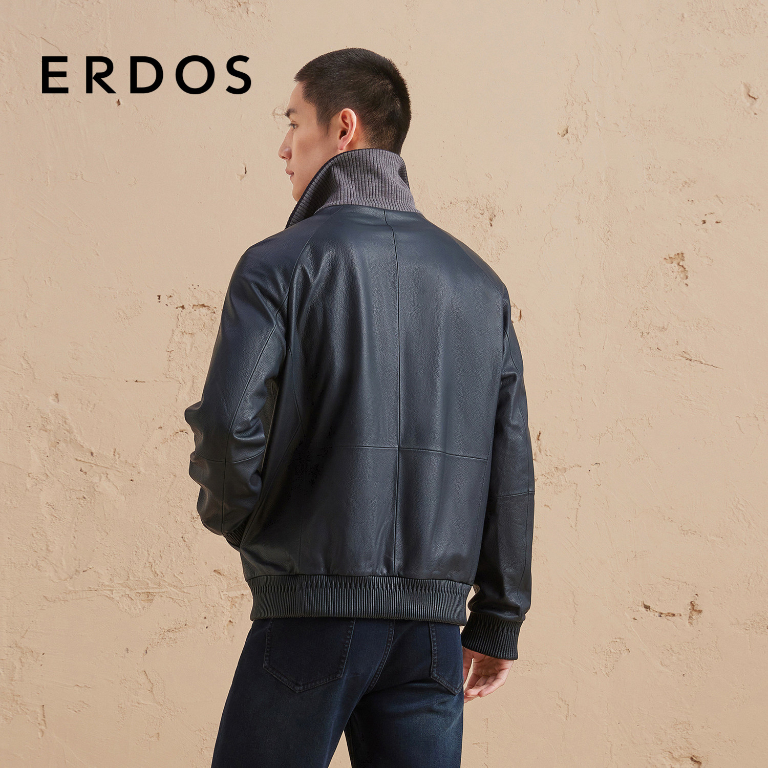 ERDOS 男装羊皮皮衣早秋自然滚揉纹理翻领教练夹克商务休闲