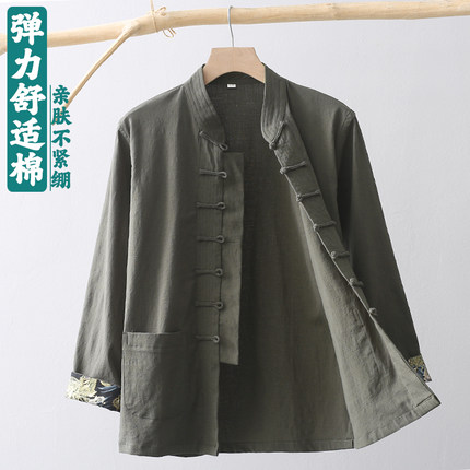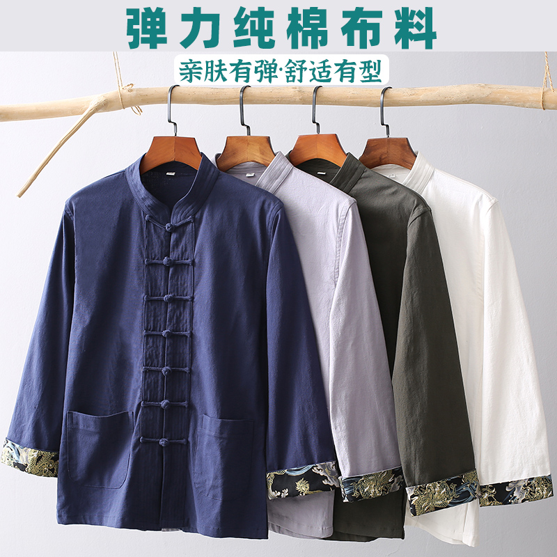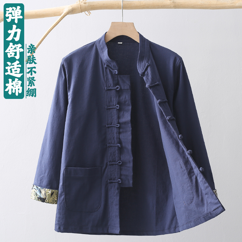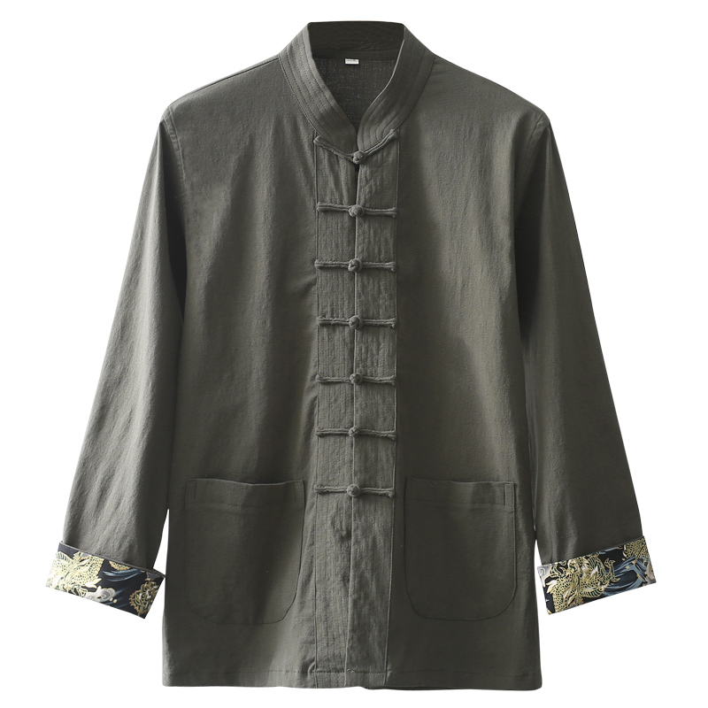 中国风唐装男青年长袖外套上衣新中式男装复古盘扣中山装汉服茶服