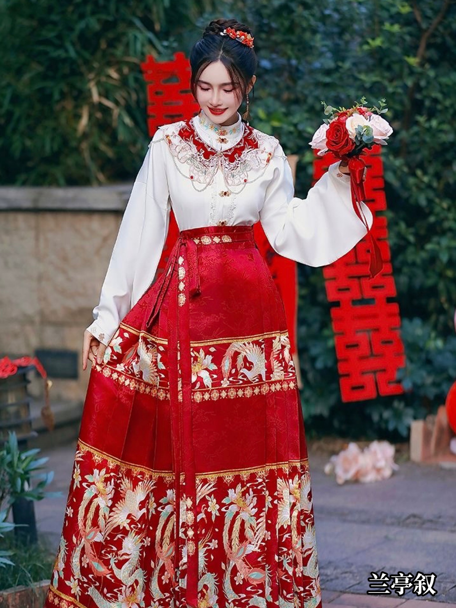 大码汉服女胖mm200斤中式订婚马面裙刺绣高领敬酒服结婚日常套装