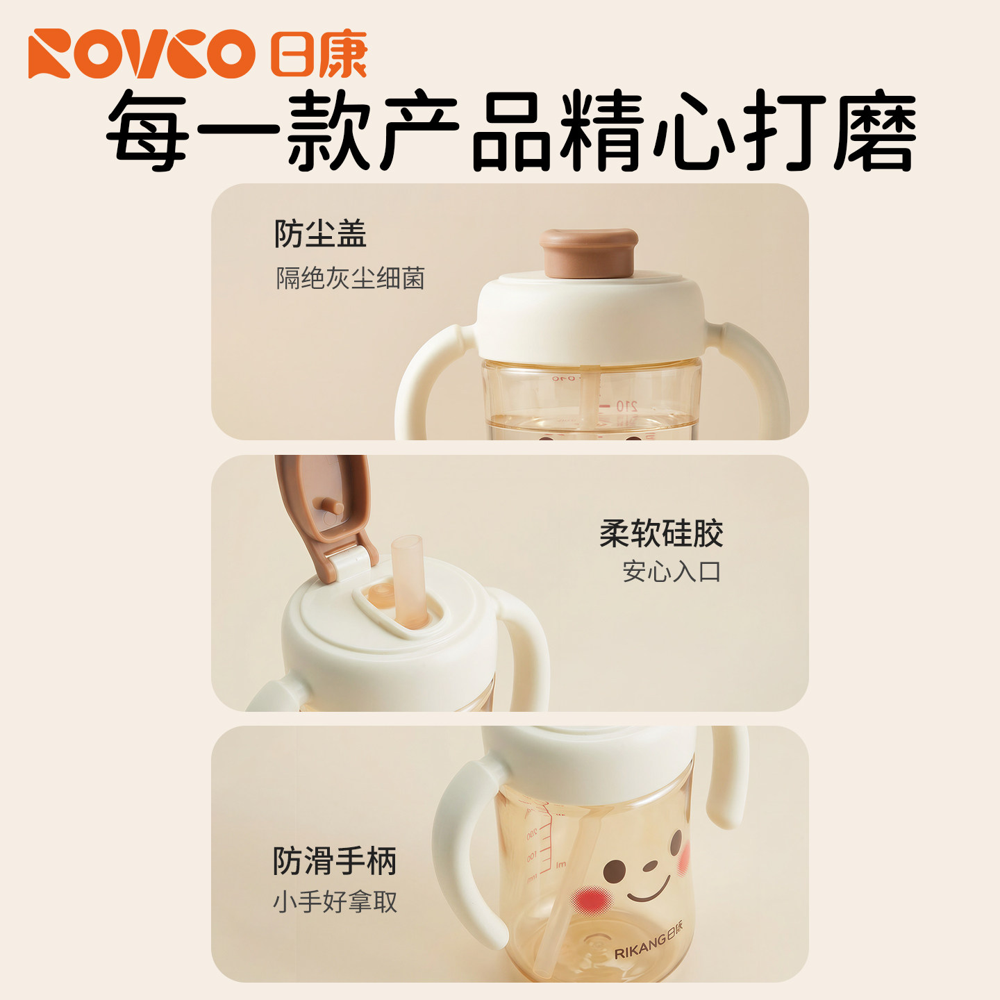 日康奶瓶PPSU直饮杯1-2-3岁以上儿童水杯吸管杯大宝宝喝水牛奶杯