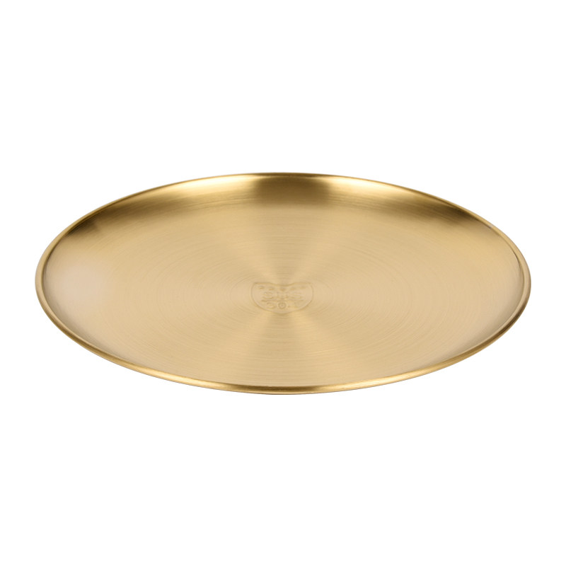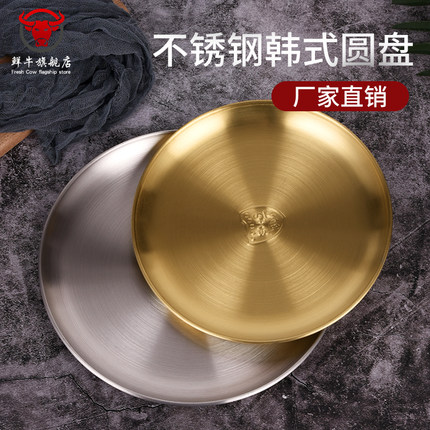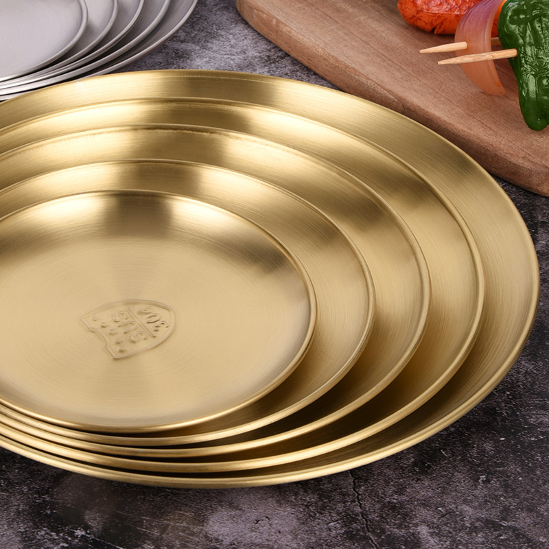 韩式304不锈钢圆盘骨碟盘金色甜品餐具烤肉盘露营盘蛋糕盘水果盘