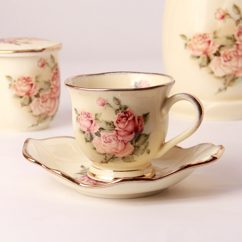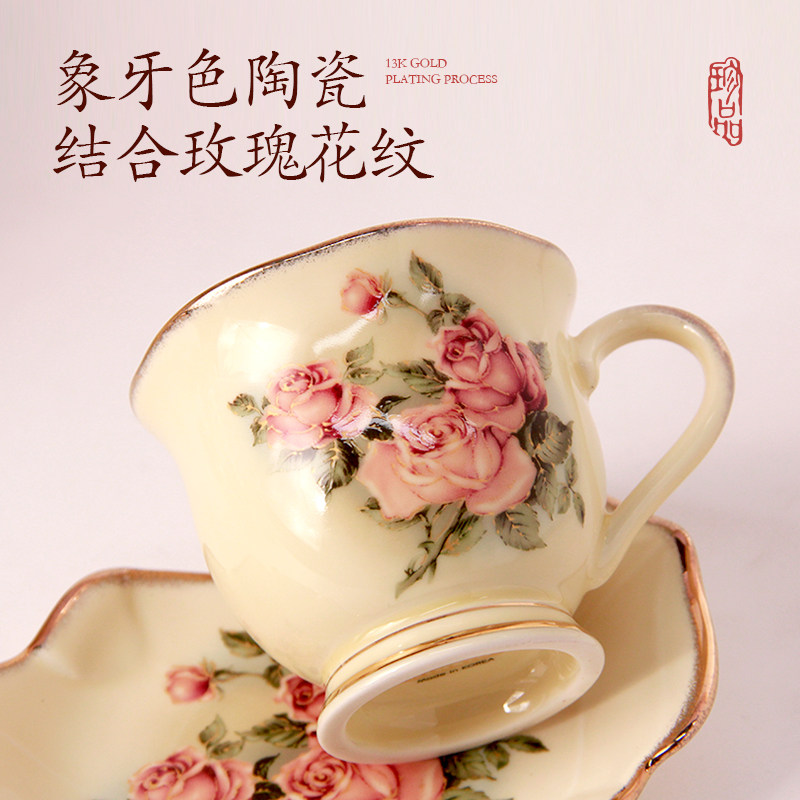 韩国进口Queen Rose玫瑰创意欧式陶瓷咖啡杯咖啡杯套装杯子餐具