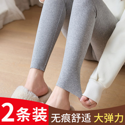 灰色打底裤2025新款春秋季女士大码无痕舒适高腰纯色螺纹棉毛线裤