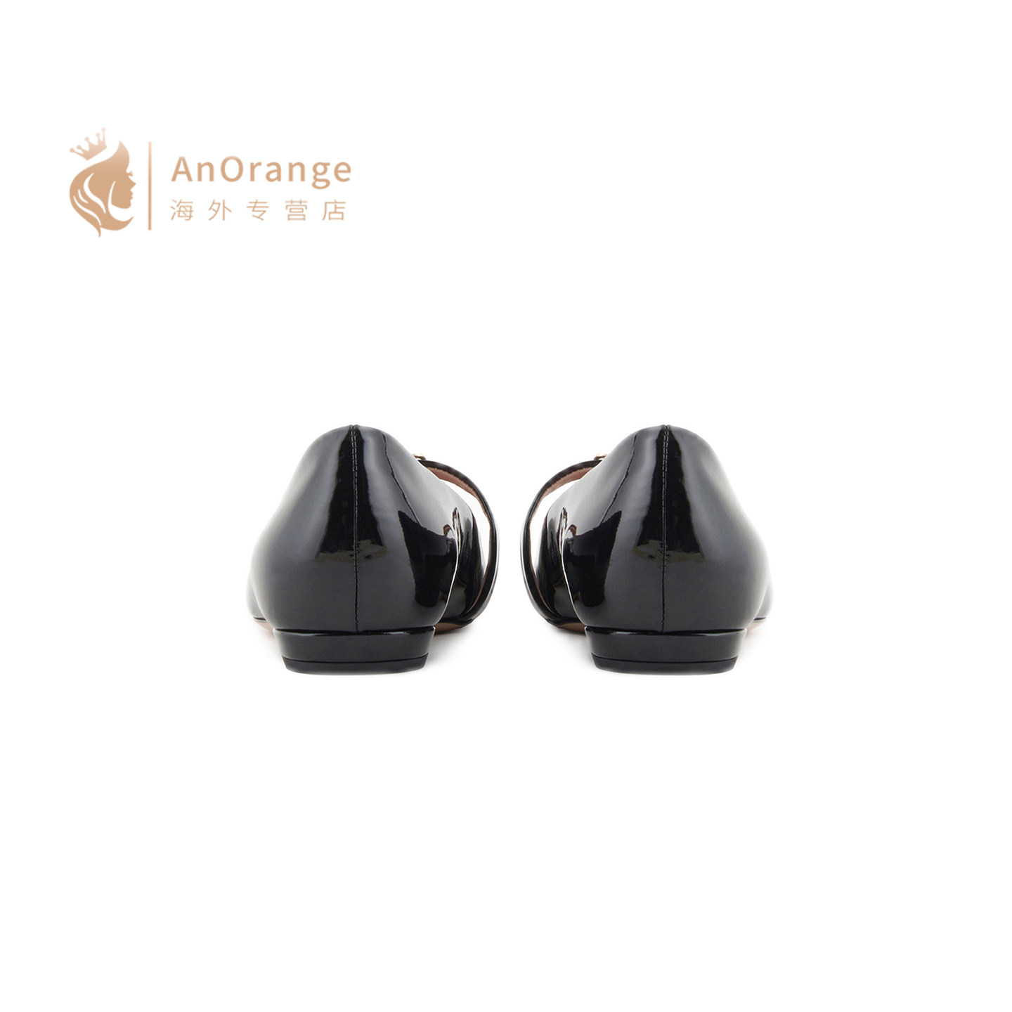 Armani阿玛尼EA女鞋平底鞋2026新款黑色小牛皮徽标尖头芭蕾舞鞋