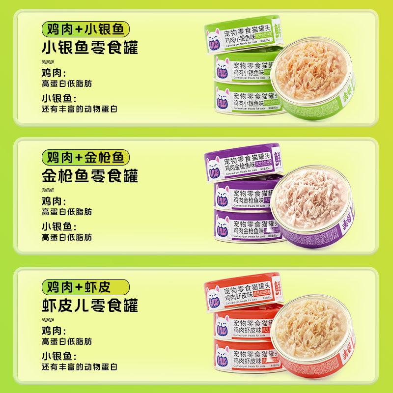 KPLUS猫罐头猫咪零食罐补充营养鸡肉虾皮小银鱼金枪鱼补水浓汤85g