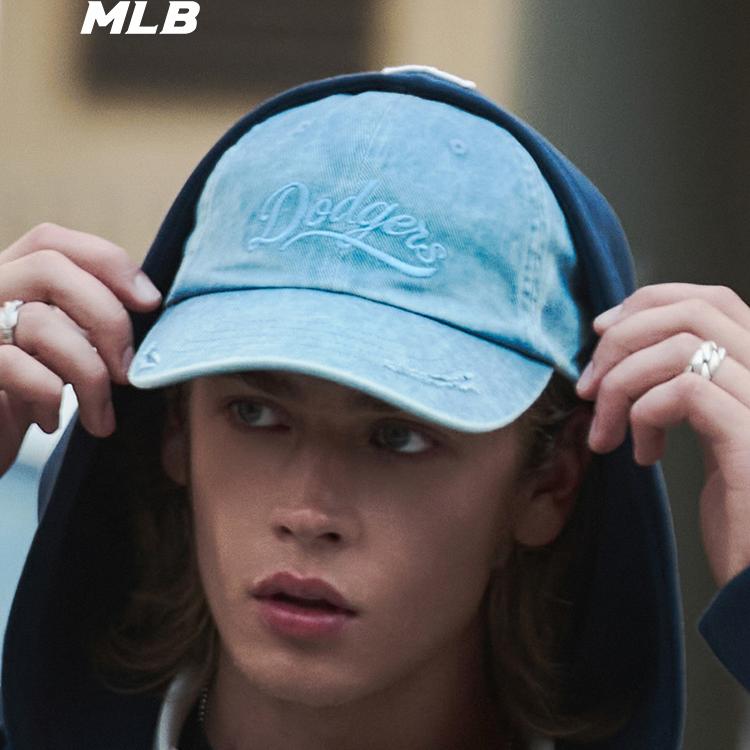 MLB男女情侣24秋季新款做旧破洞刺绣字母棒球休闲鸭舌帽3ACPVL64N