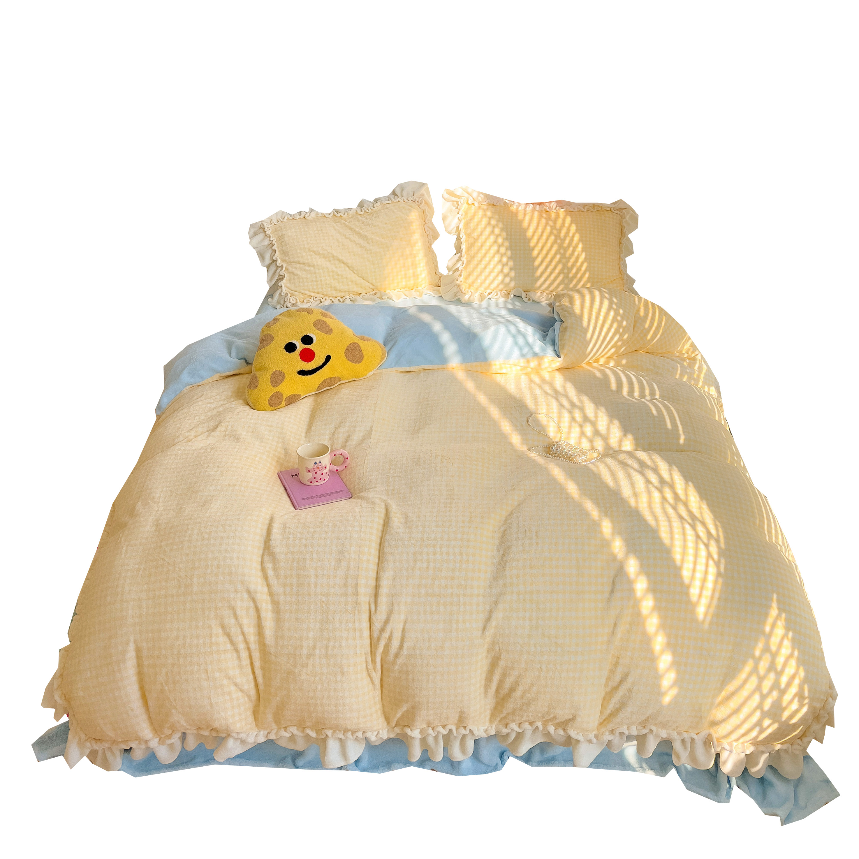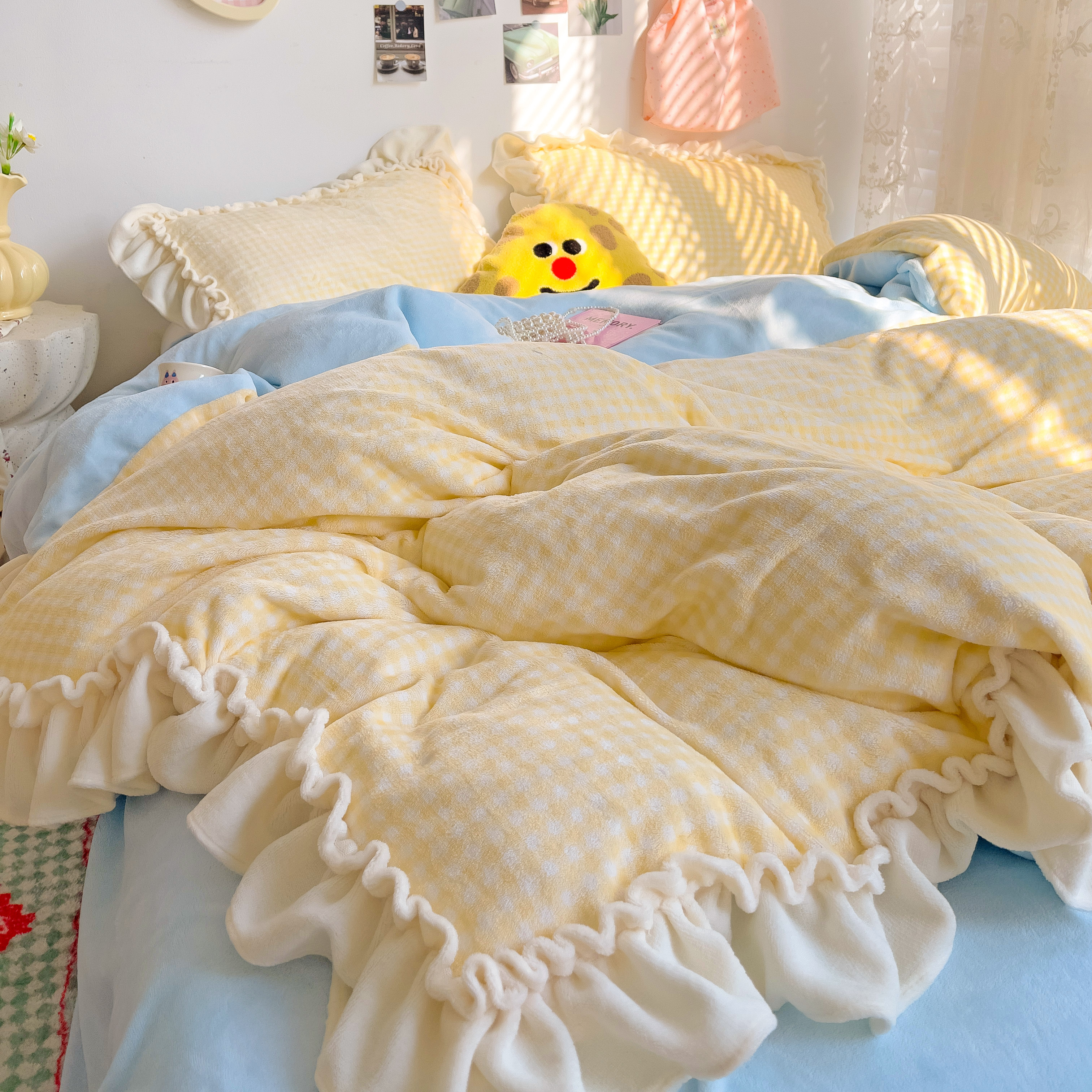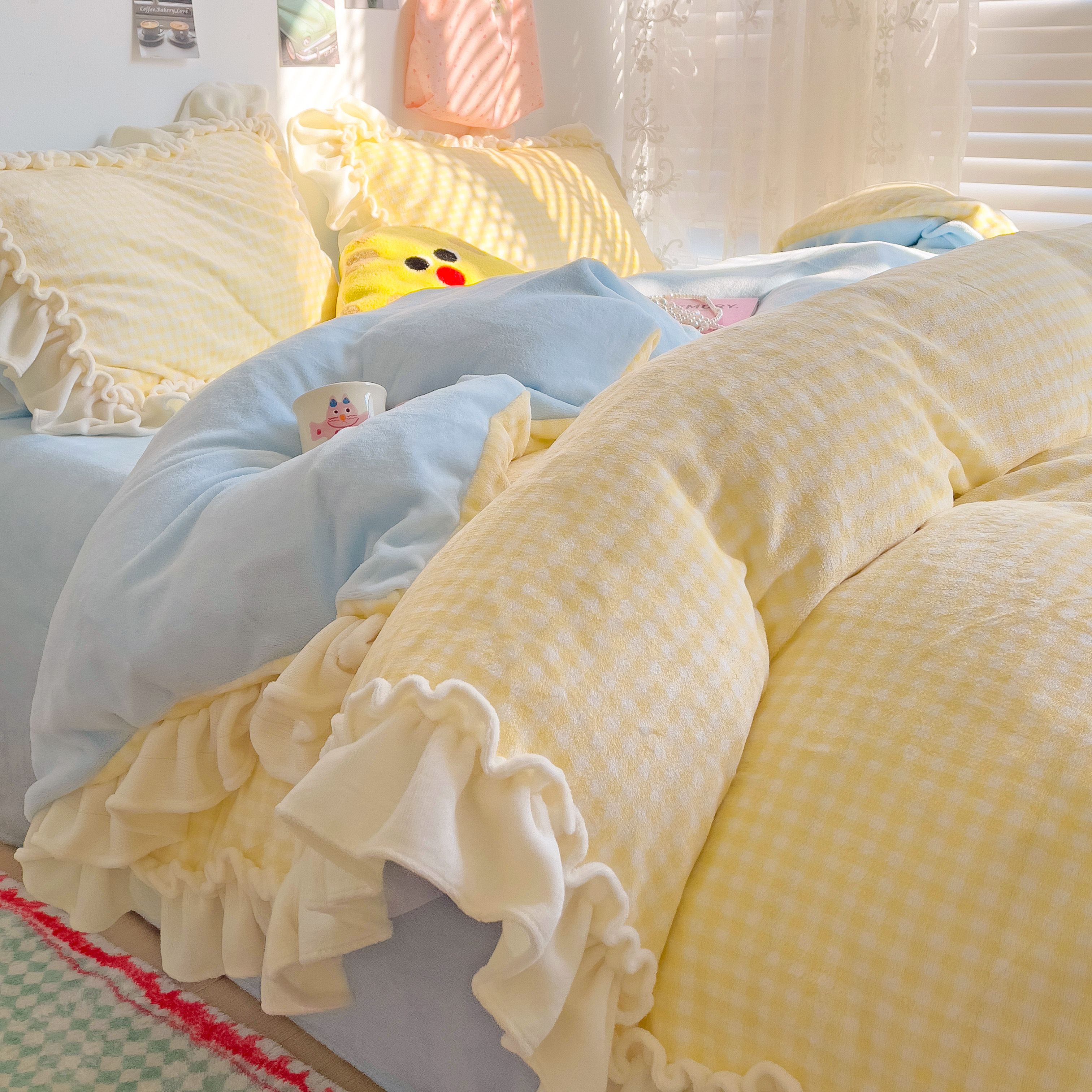 秋冬季韩式公主风牛奶绒四件套加厚珊瑚法兰绒被套床上用品单人三