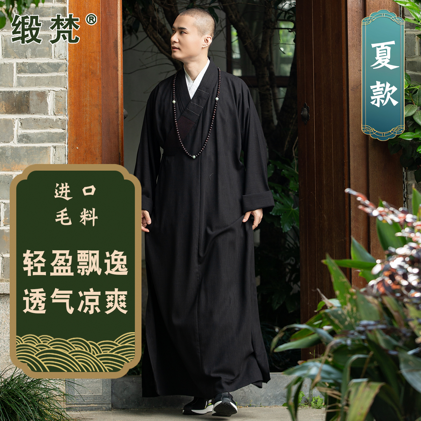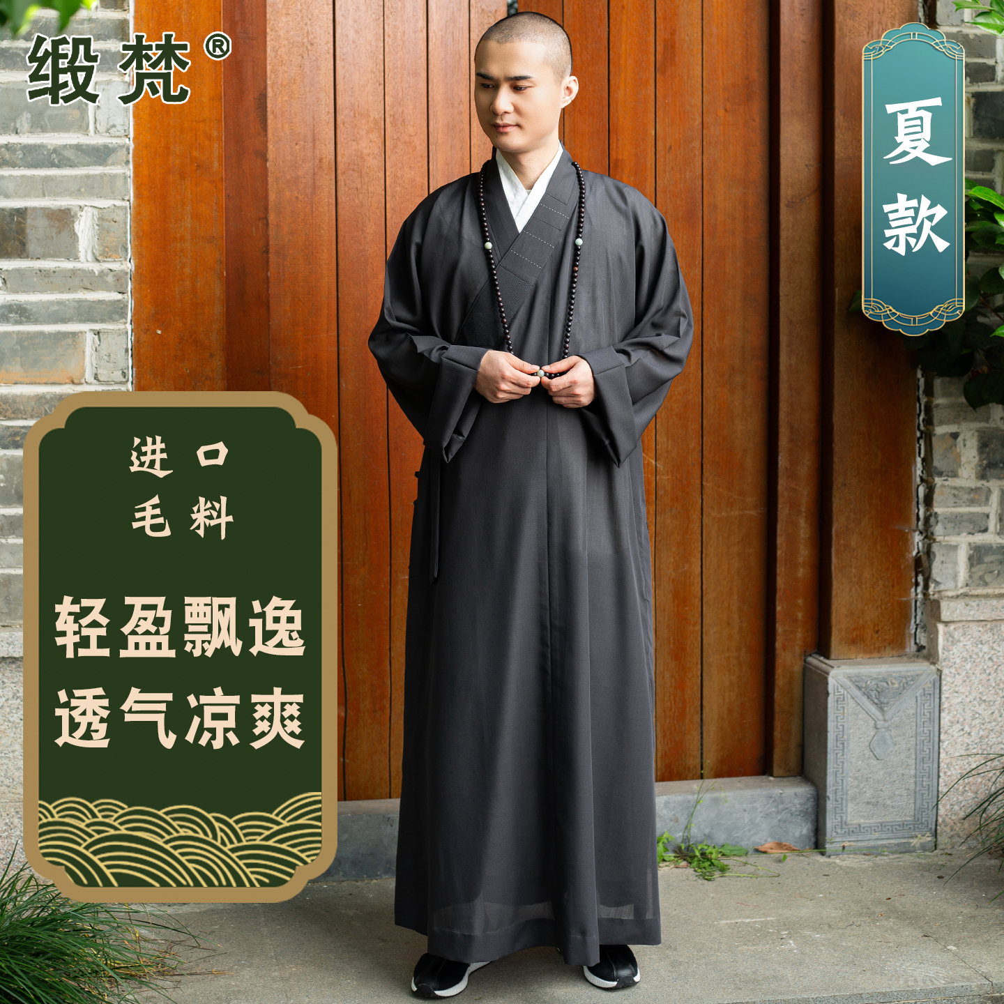 缎梵高档僧服装夏季超薄长褂男女同款毛料和尚衣服私人定制比丘尼