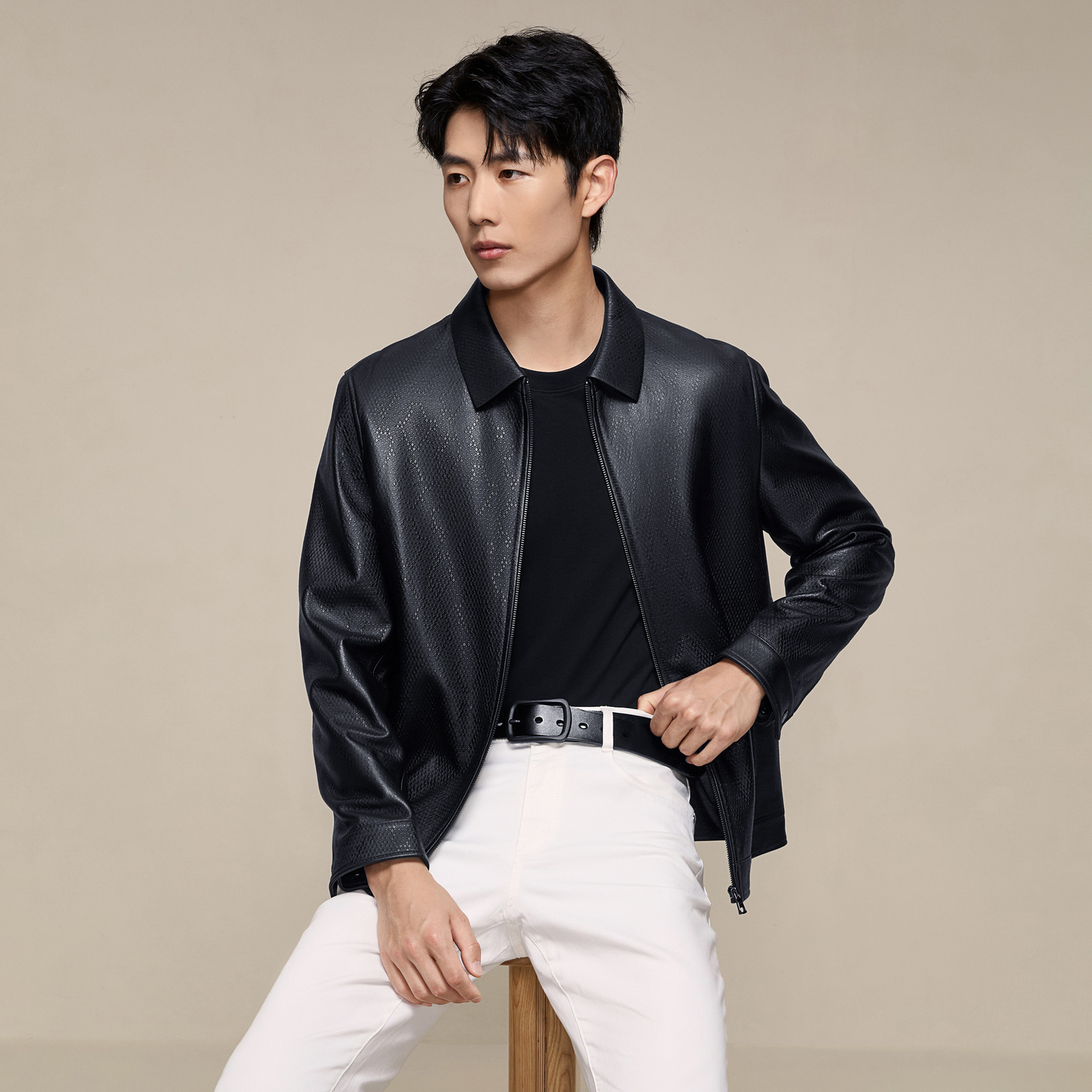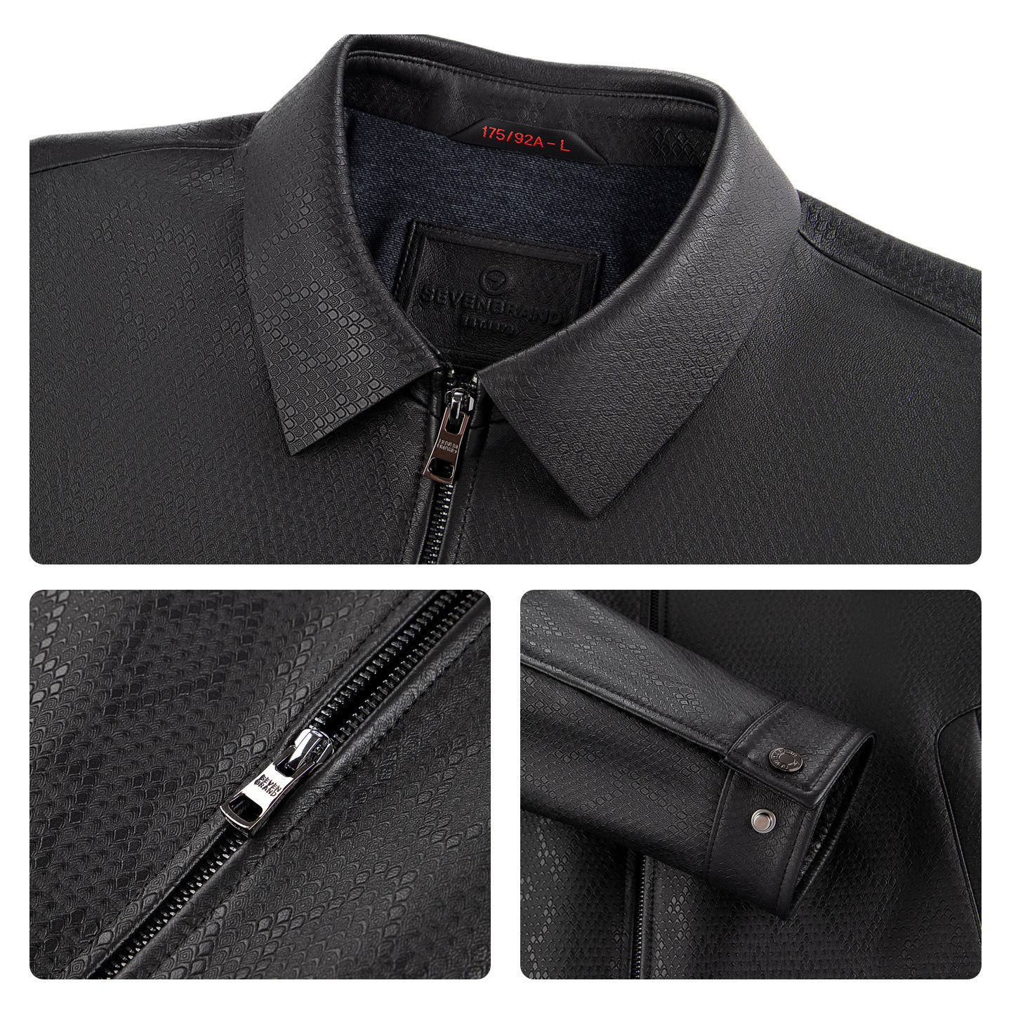 【时尚保暖】柒牌男装真皮皮衣2025秋季新品商务休闲黑色翻领外套