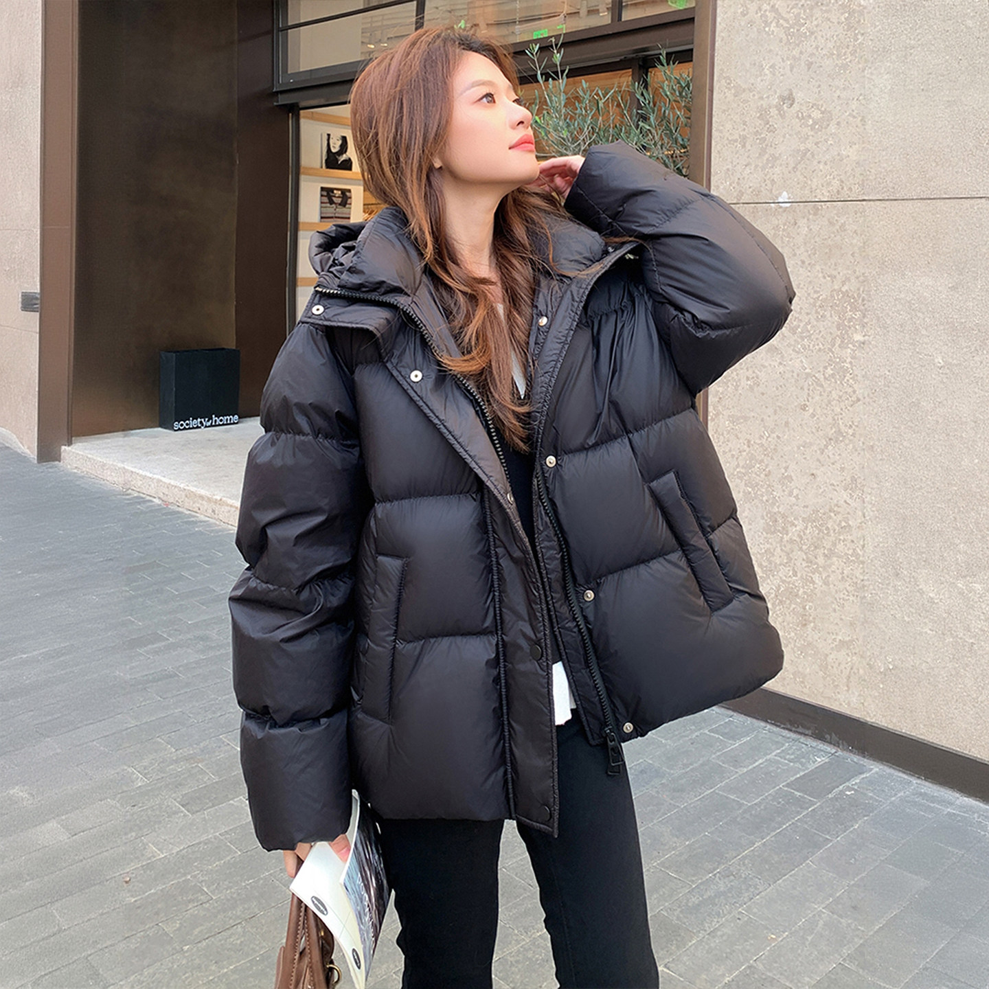 胖mm大码女装黑色宽松加厚保暖棉服女韩系休闲百搭设计感棉衣外套