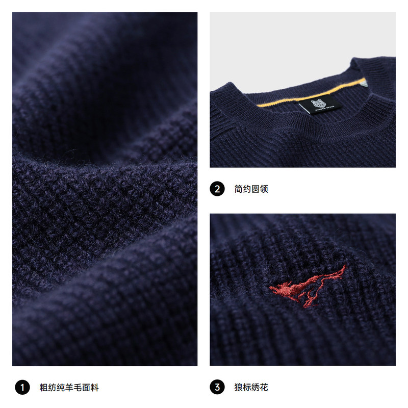 七匹狼加厚圆领纯羊毛毛衣