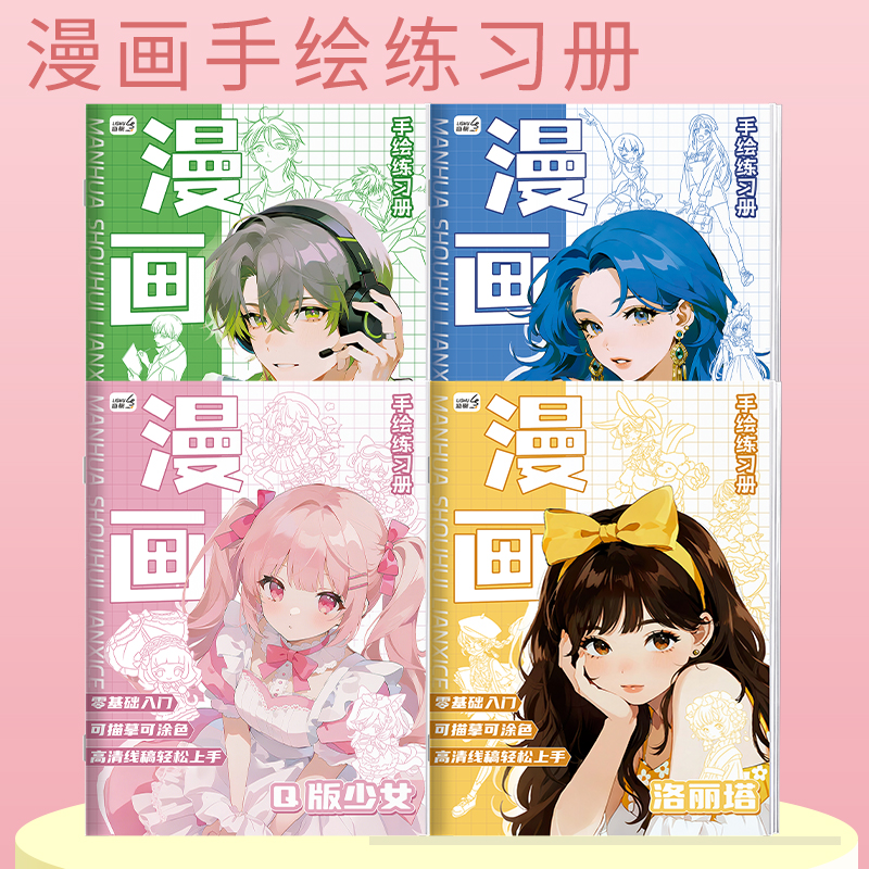 漫画线稿描摹本Q版美少女素描控笔练习专业手绘动漫线稿浅印描红本环保纸张护眼基础入门动漫临摹涂色画画本