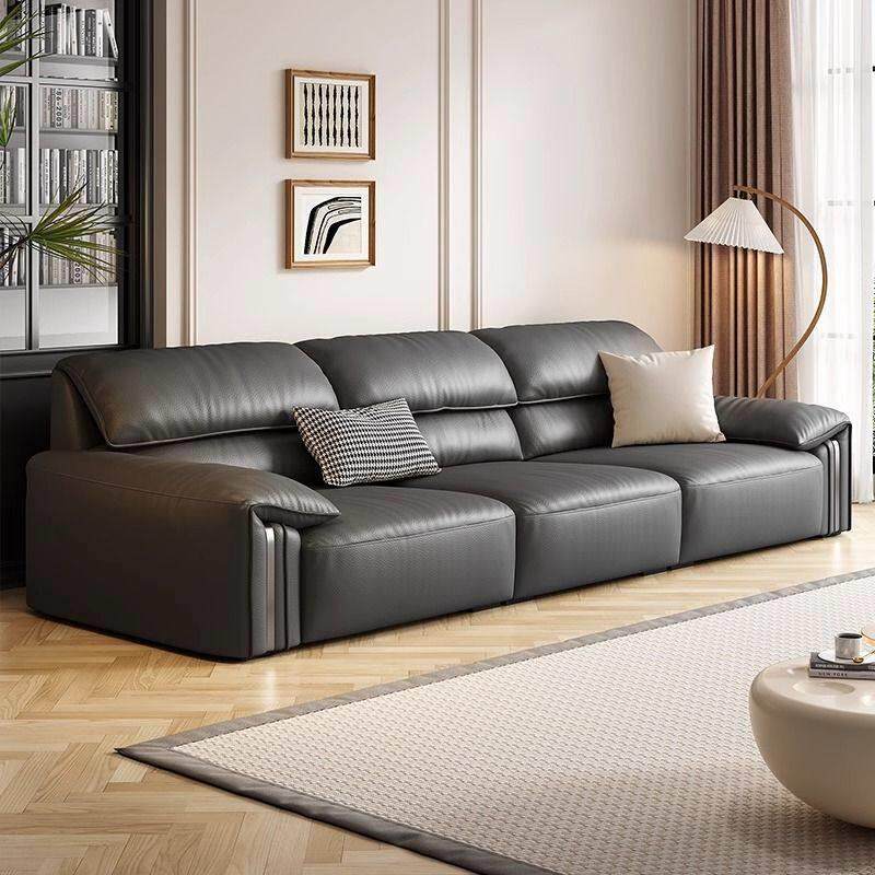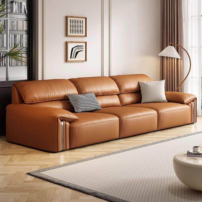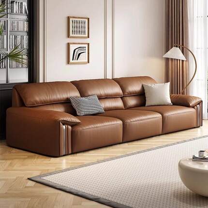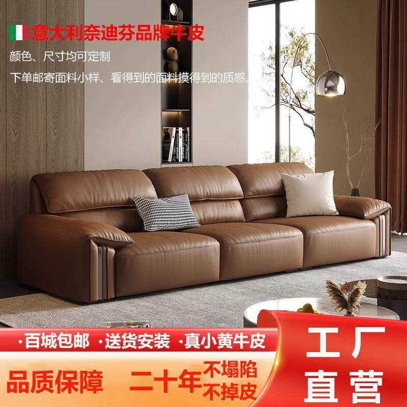 意式极简真皮沙发头层牛皮客厅轻奢覆古新款直排大象耳朵皮艺沙发