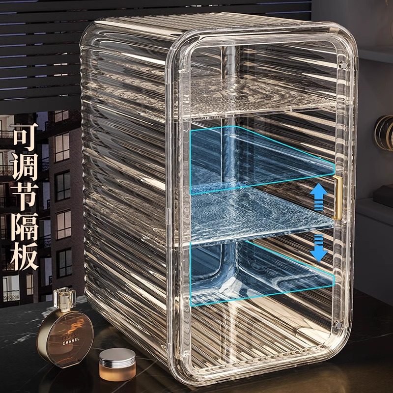 日本桌面上化妆品收纳整理盒防尘亚克力收纳盒一体柜卫生间置物架