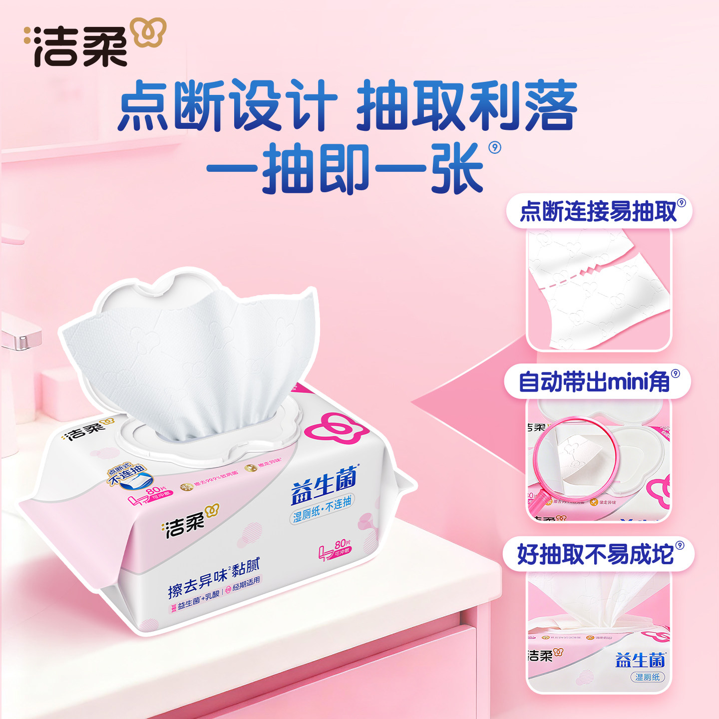 【积分】洁柔益生菌湿厕纸便携湿巾袋装有效杀菌亲肤无刺激80抽
