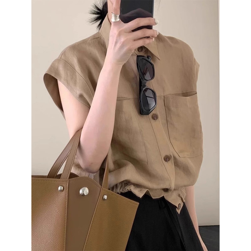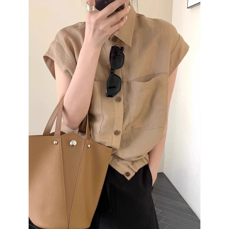 法式轻熟风小飞袖棉麻衬衫上衣薄
