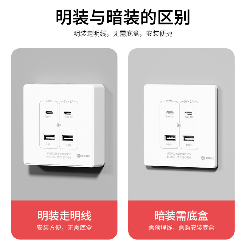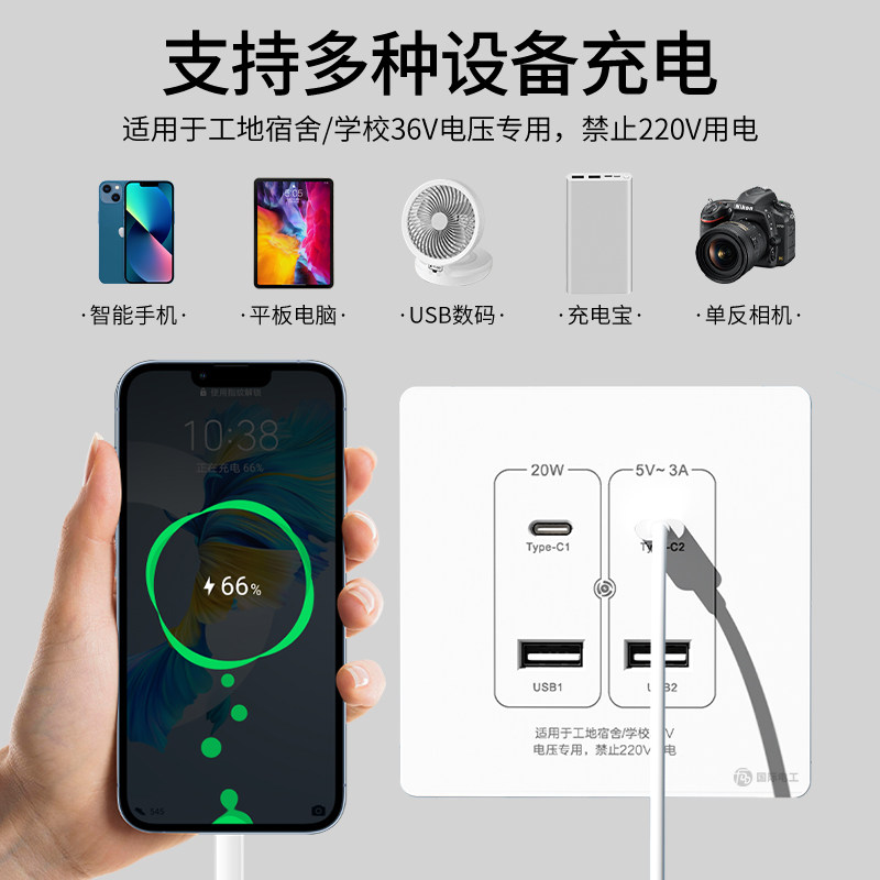 86型20W快充Type-c插座面板二位四位USB床头开关插座手机充电面板