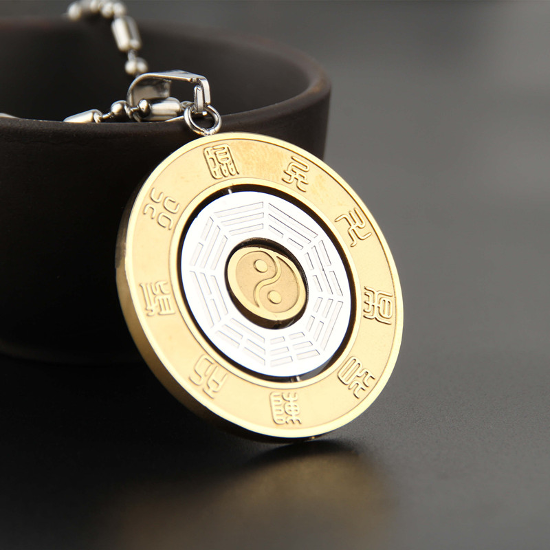 道家复古钛钢金光九字真言八卦吊坠项链阴阳鱼太极图挂件男女饰品