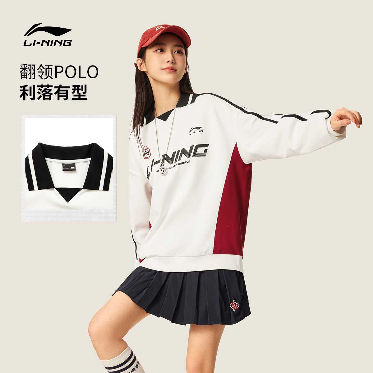 李宁卫衣女秋冬2025新款情侣美式上衣复古休闲翻领薄款运动长袖男