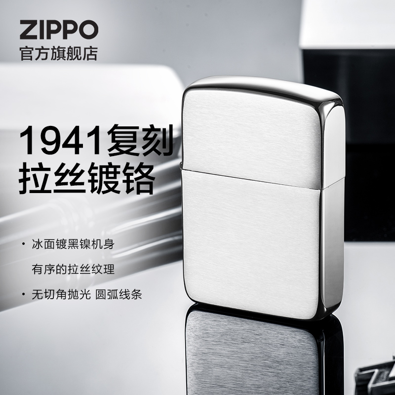 Zippo正品防风煤油打火机之宝1941复刻拉丝镀铬送男友生日礼物