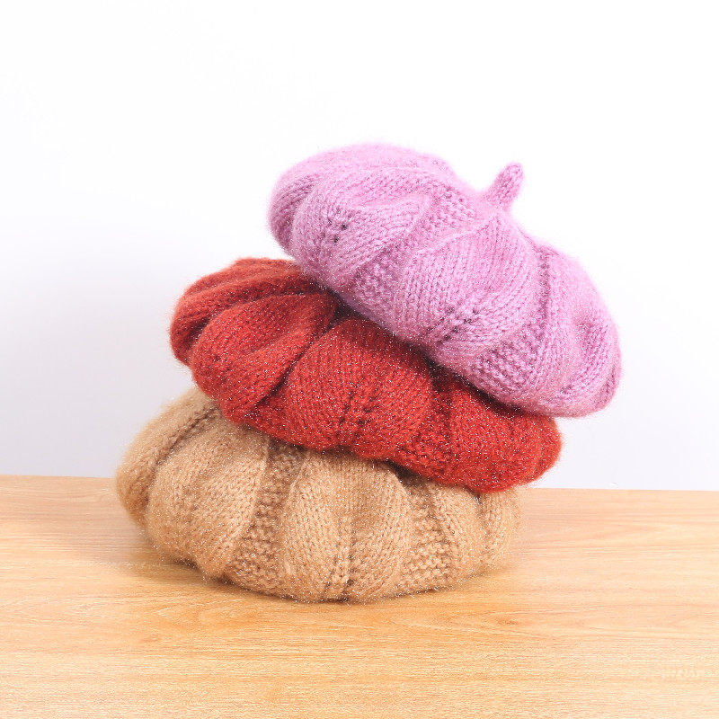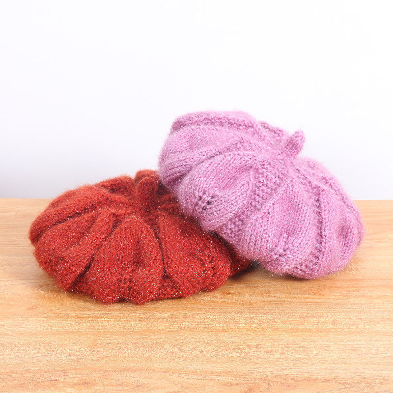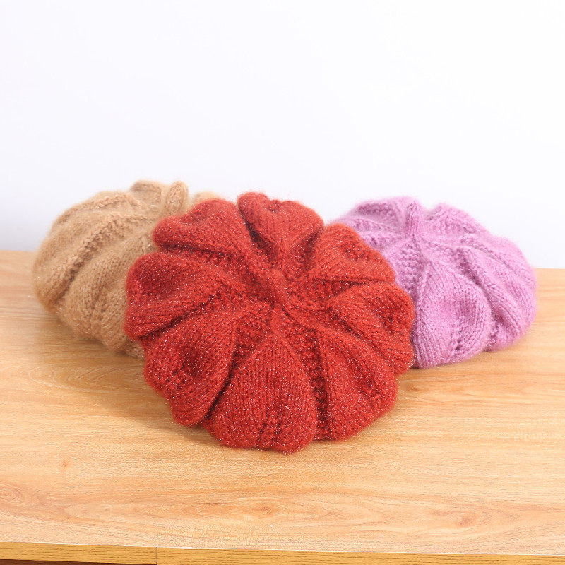 个性大花瓣针织贝雷帽女秋冬新款毛线帽可爱日系百搭帽子画家帽潮