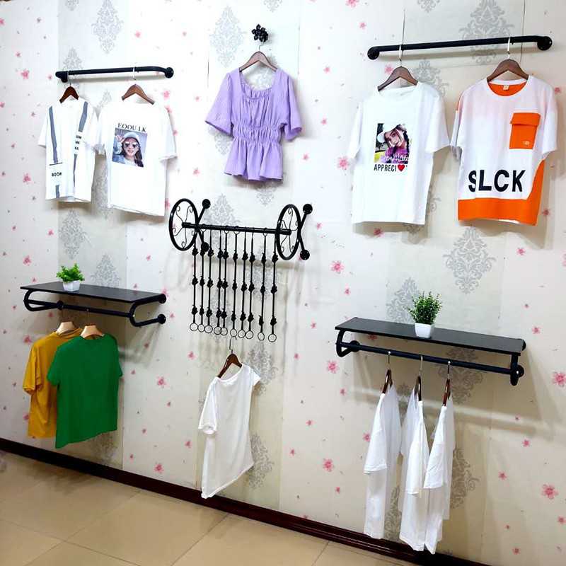 服装店上墙展示架童装女装店货架墙上组合衣服杆壁挂式衣架铁架子