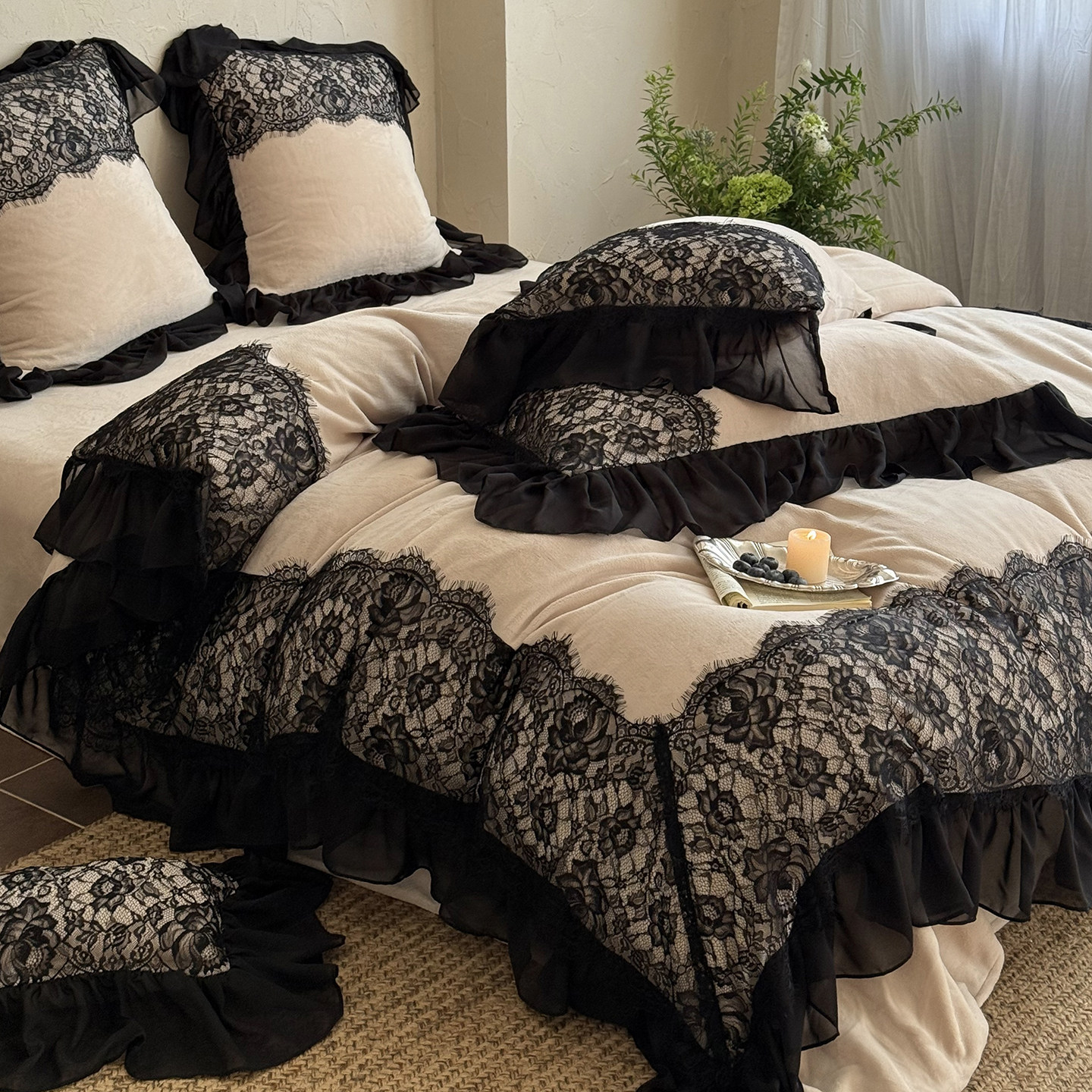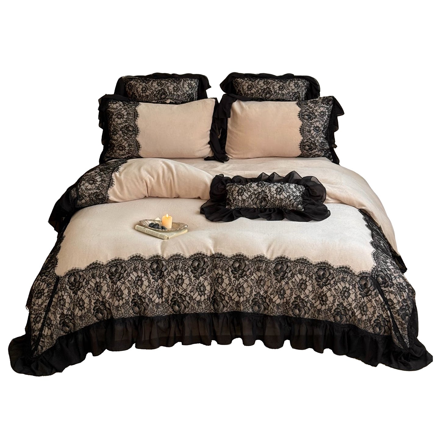 法式复古浪漫牛奶绒四件套蕾丝边加厚保暖被套珊瑚绒床单加绒床品