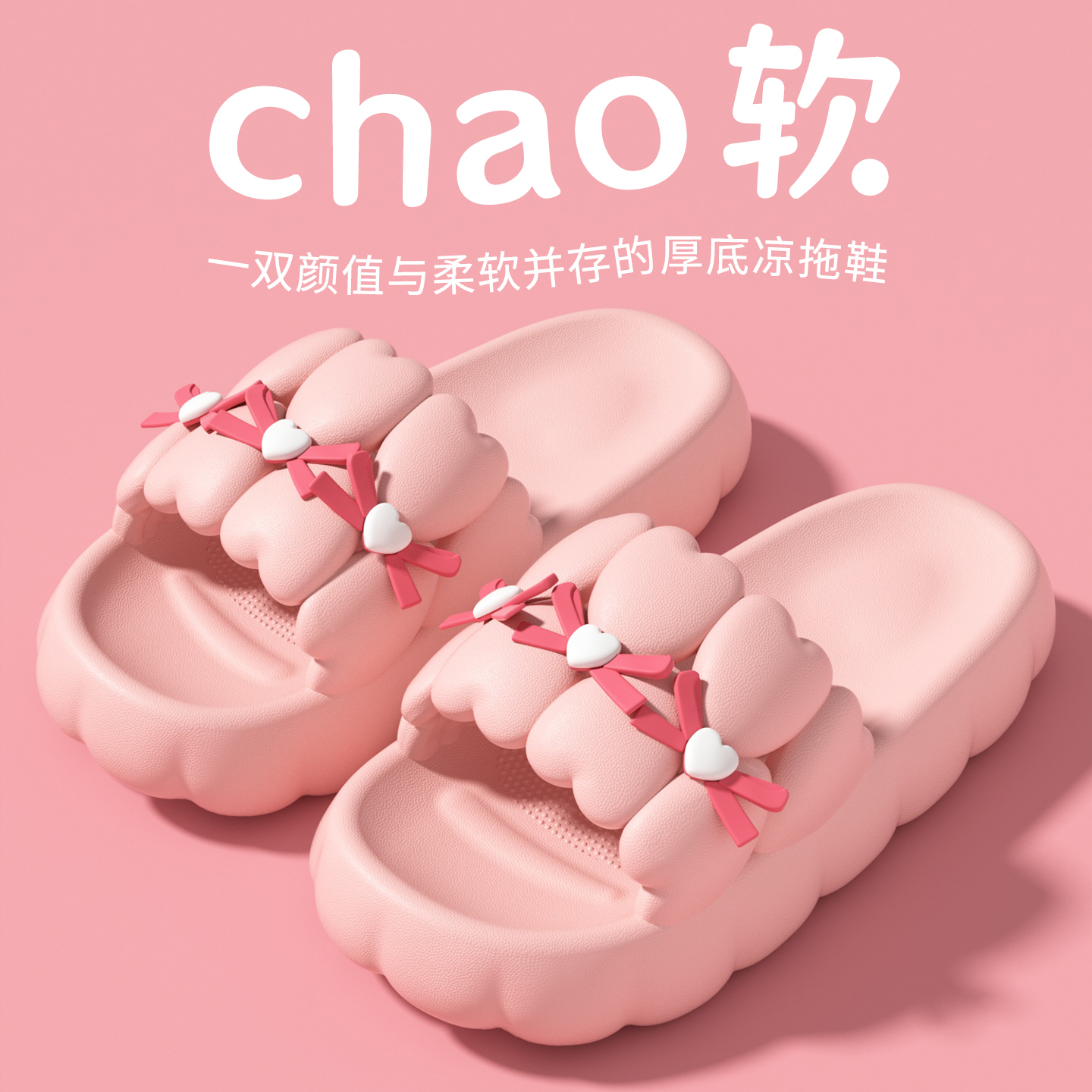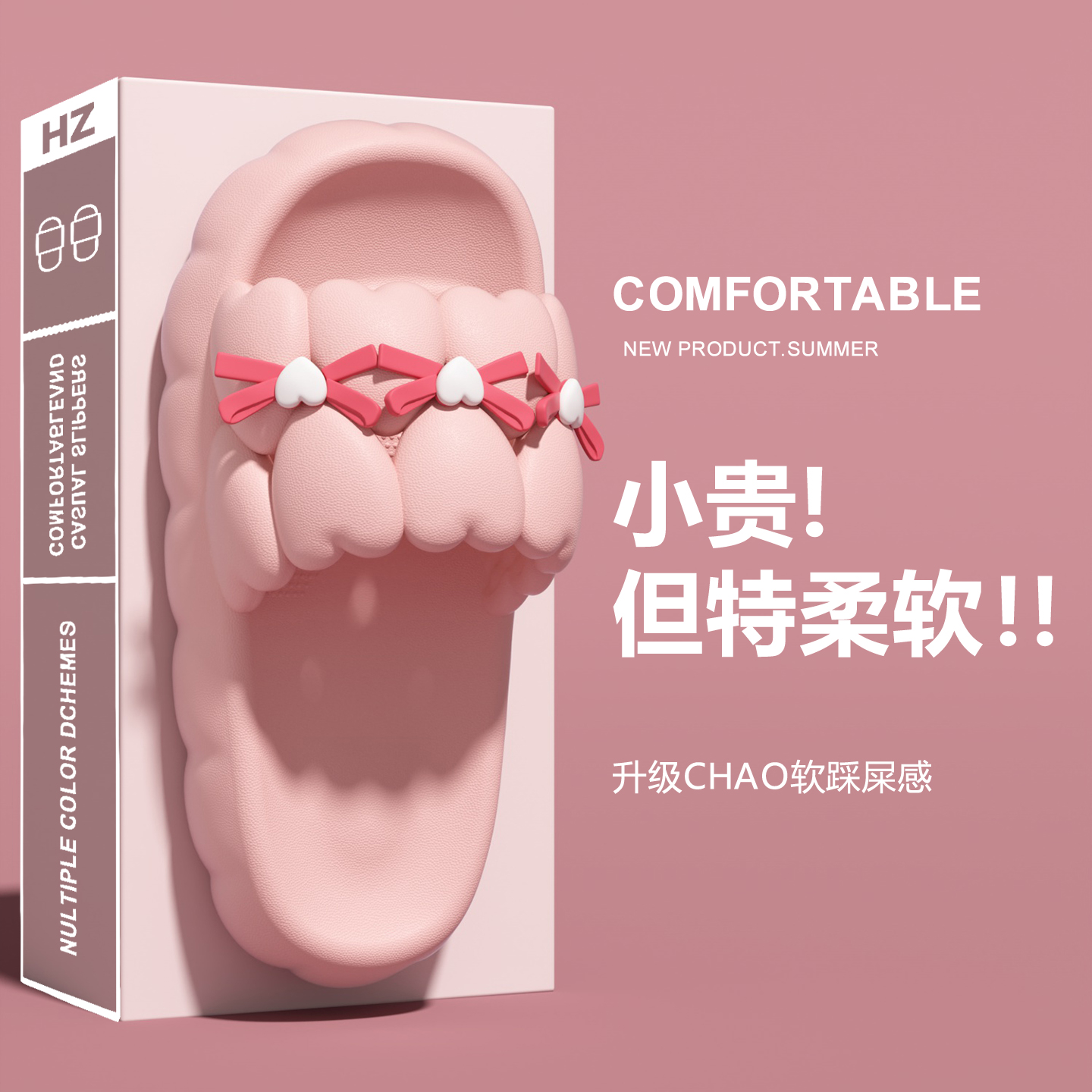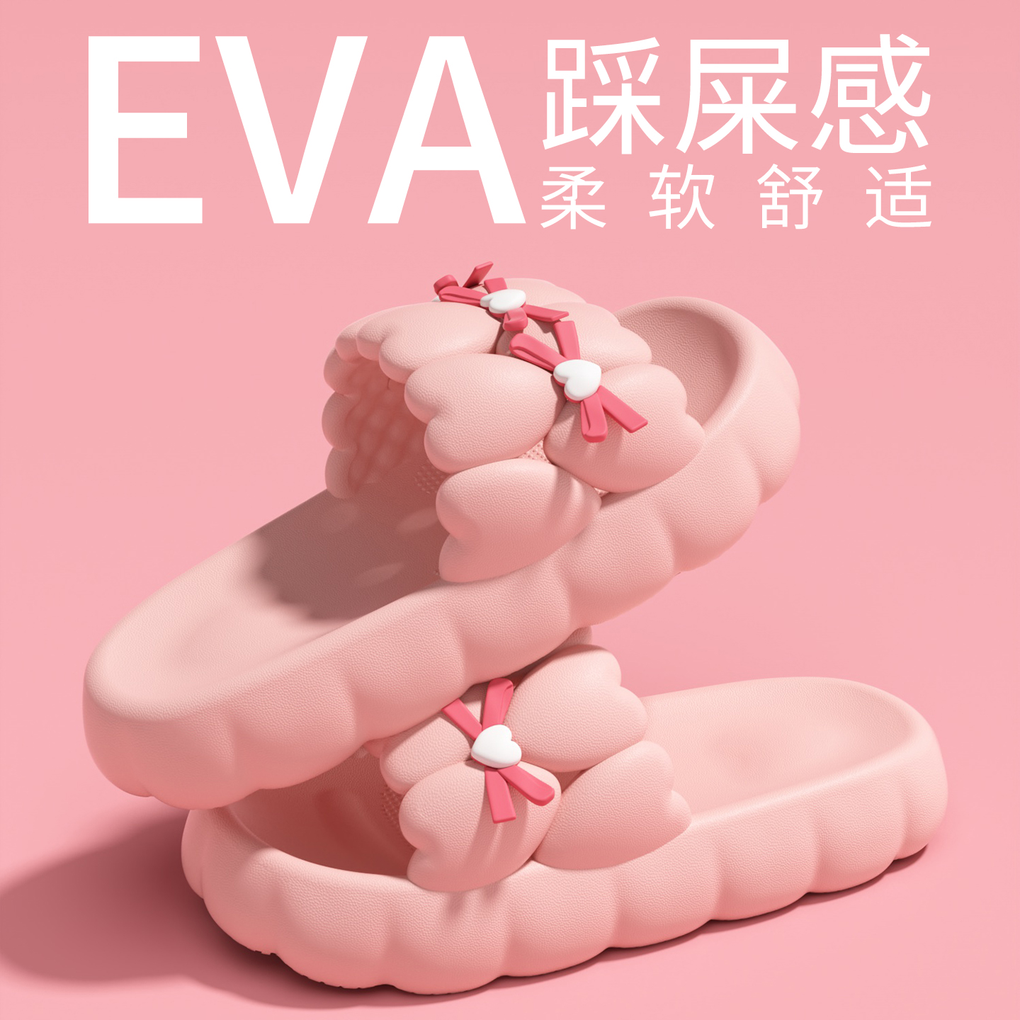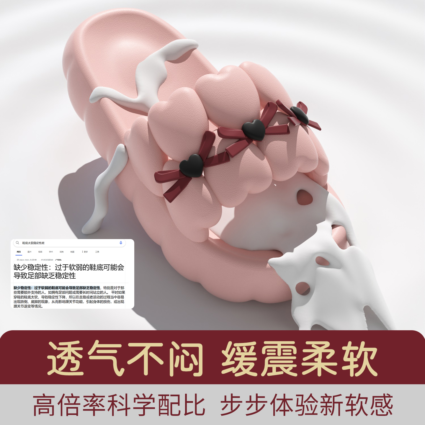 踩屎感拖鞋女夏季2025新款室内家居蝴蝶结可爱浴室防滑厚底凉拖女