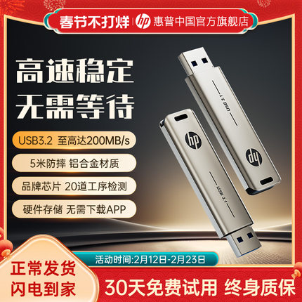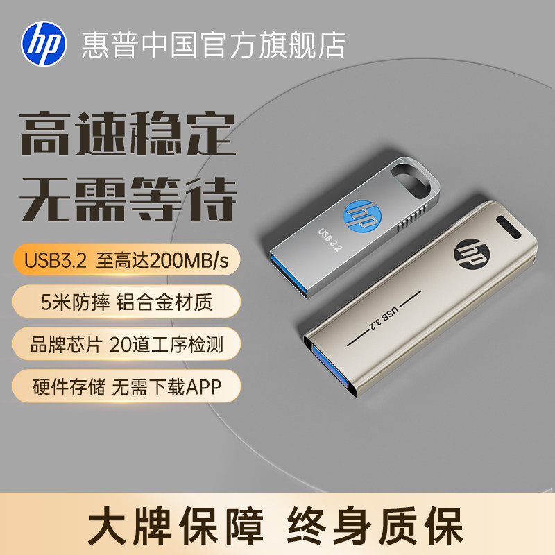 惠普旗舰店128G大容量金属u盘3.2高速官方正品电脑办公手机优盘