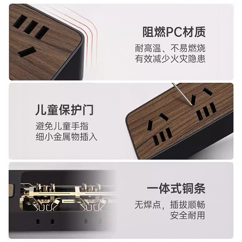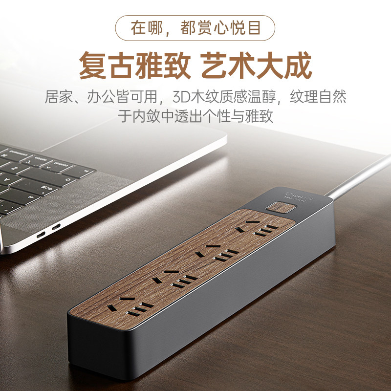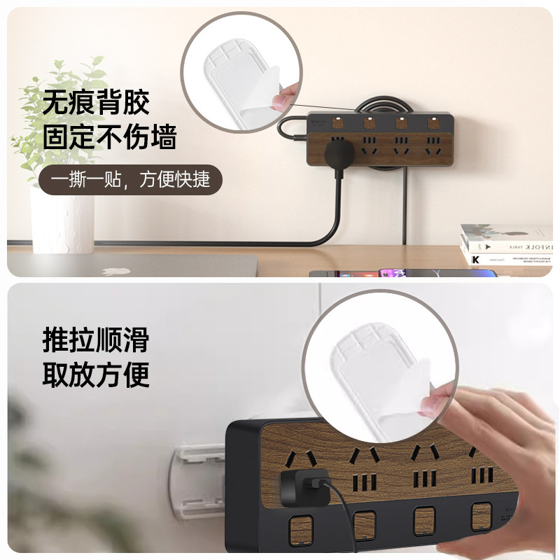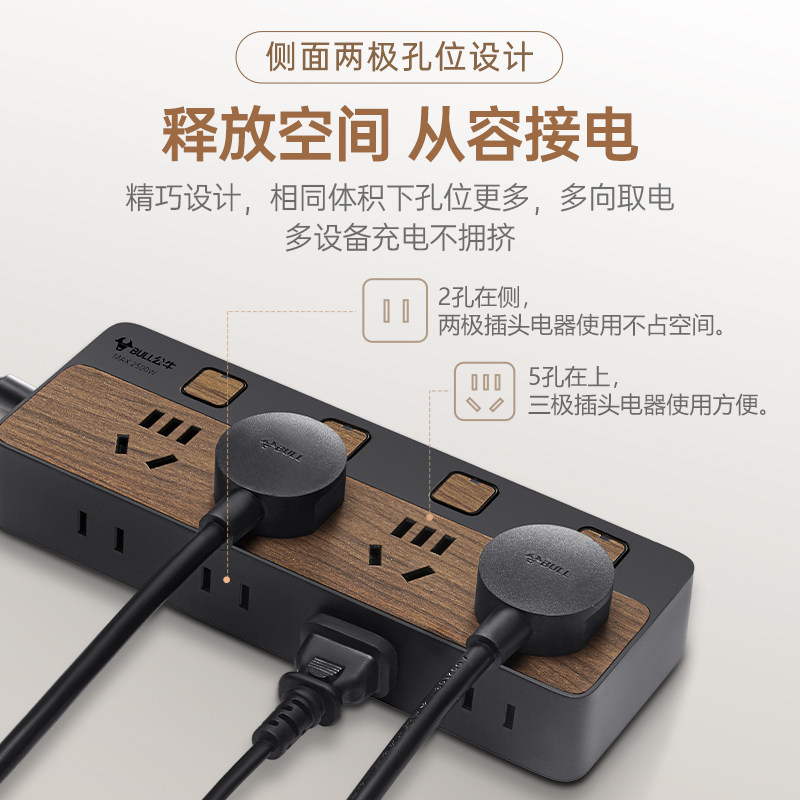 公牛木纹插排可墙壁固定