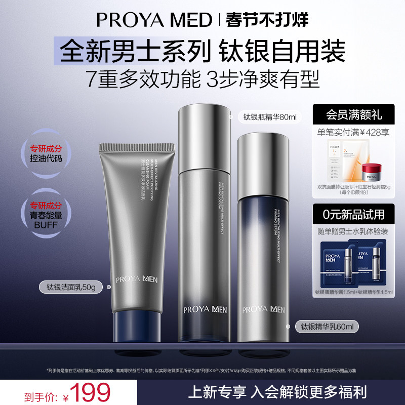 【新年礼物】珀莱雅男士护肤套装钛银瓶精华露洗面奶水乳控油紧致
