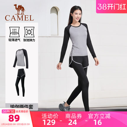 骆驼瑜伽服女士款套装春夏跑步服上衣健身服长袖休闲运动服两件套
