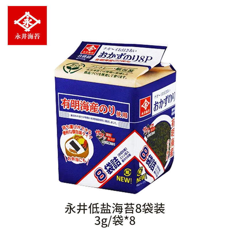 日本进口永井海苔即食低盐紫菜寿司不夹心大片装儿童零食休闲食品