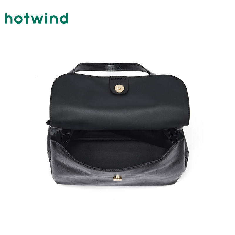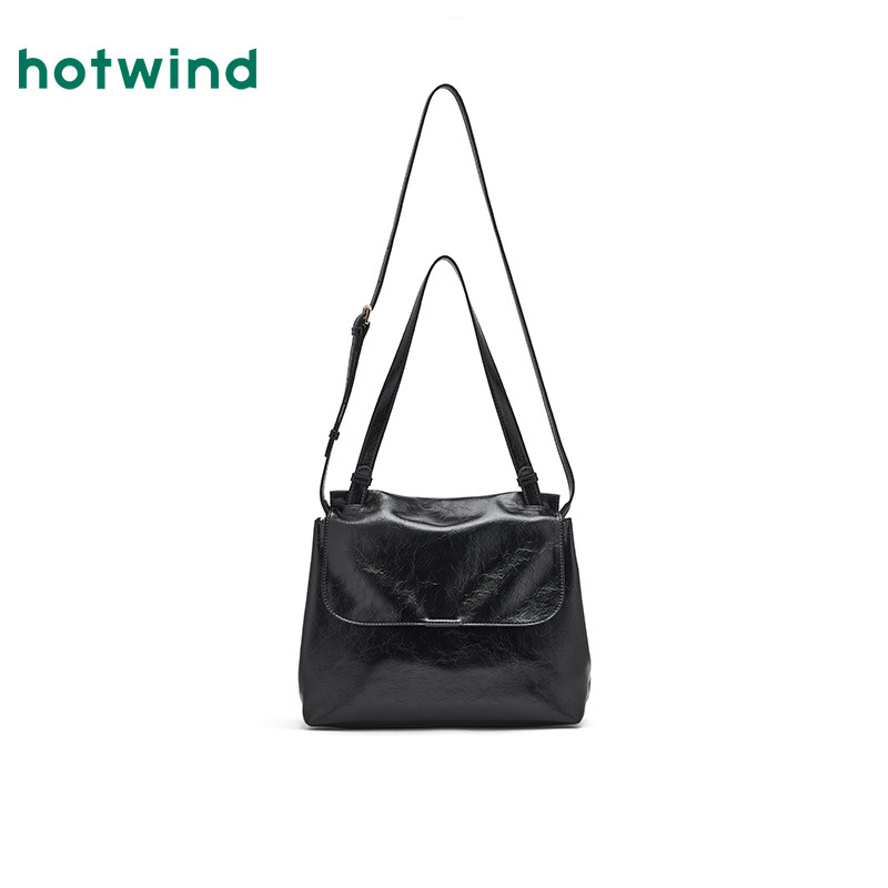 热风女士包包2025年秋季新款简洁翻盖单肩包时尚大容量黑色流浪包