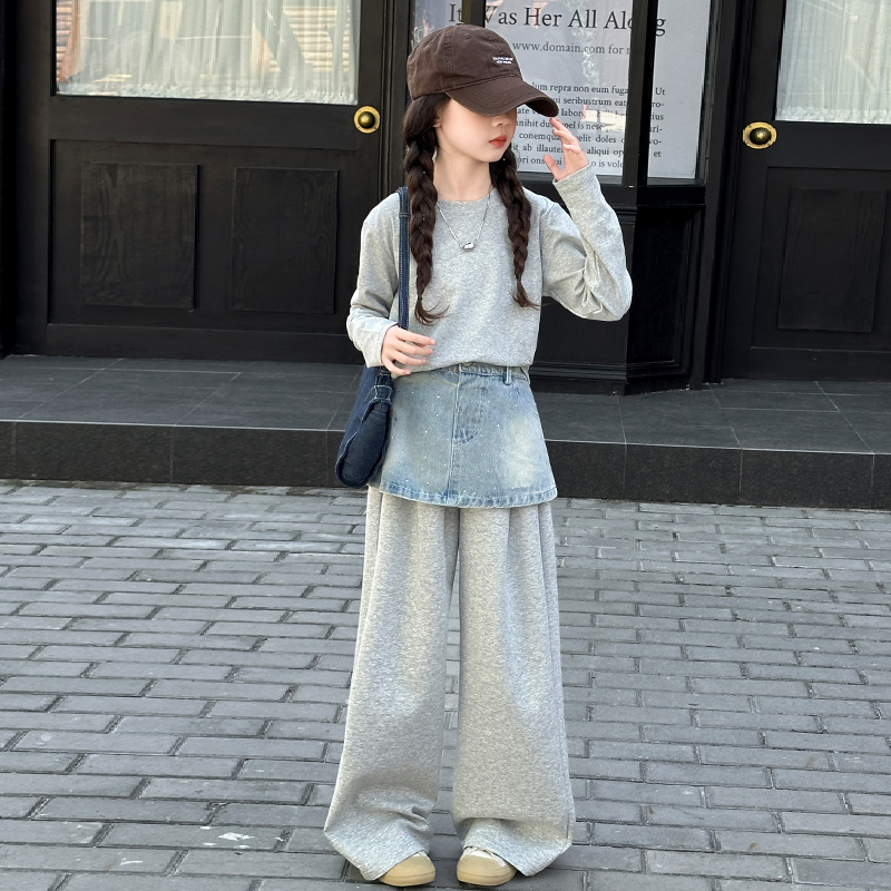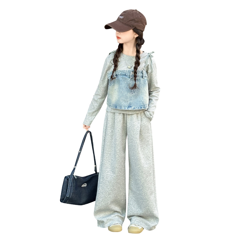 女童春秋休闲套装2025新款韩版洋派女孩牛仔吊带打底阔腿裤三件套
