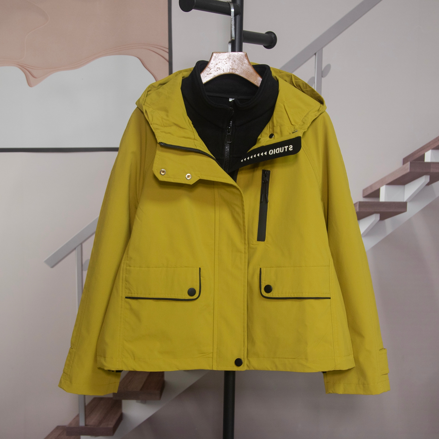 时尚休闲黑色内胆两件套外套女2025秋冬新款连帽百搭抽绳上衣7165