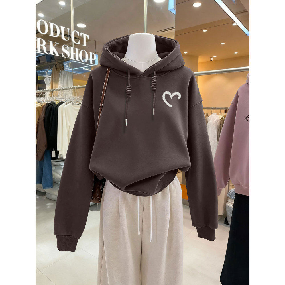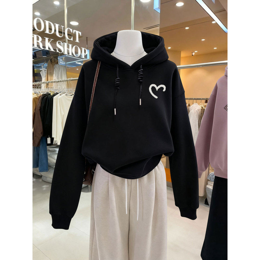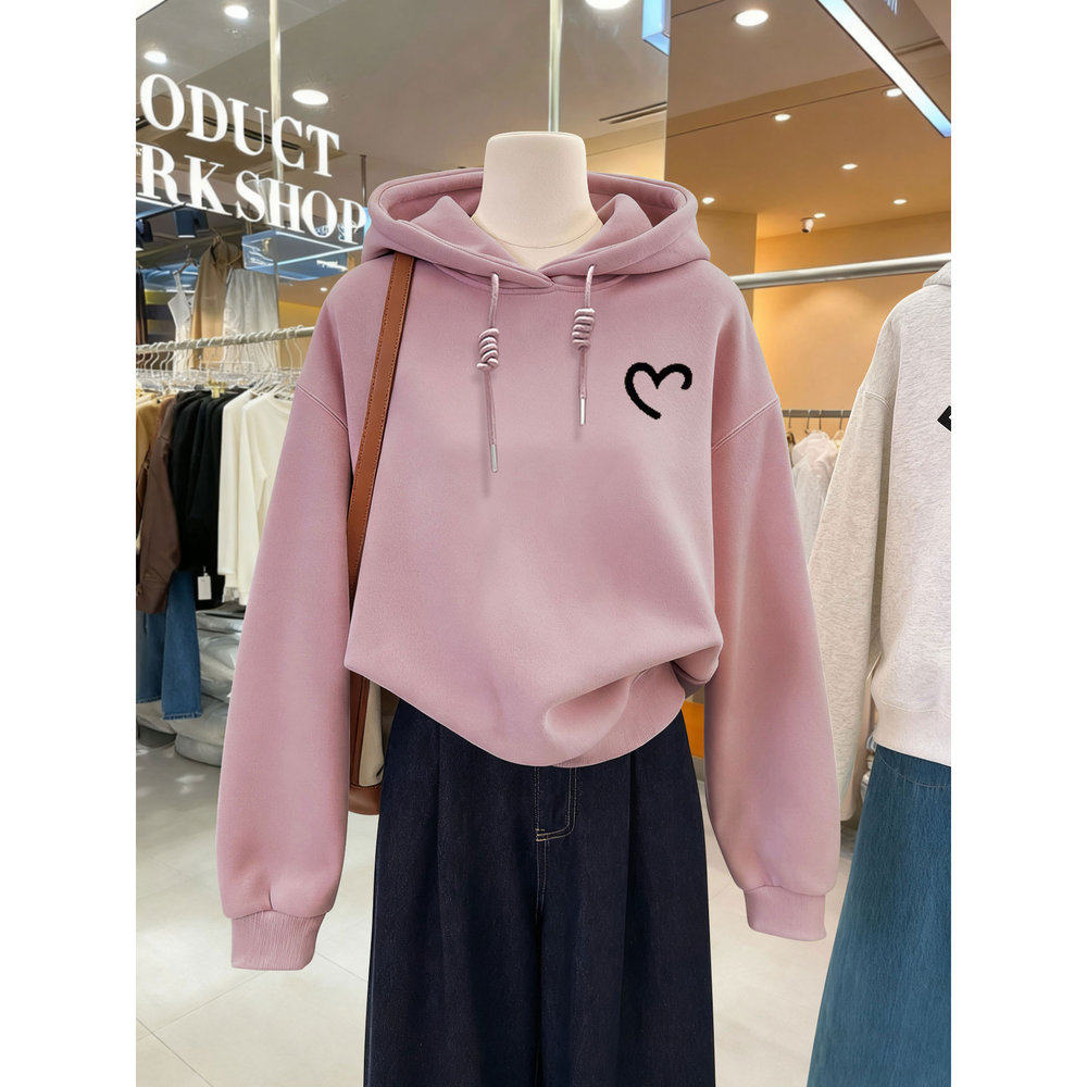 半小爱心连帽卫衣女2025春秋冬宽松慵懒风加绒加厚长袖套头上衣潮