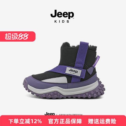 jeep女童雪地靴真皮防水加绒儿童大棉鞋冬季2025新款东北男童棉靴