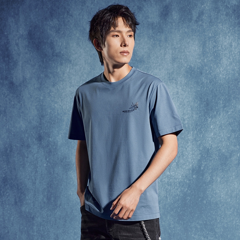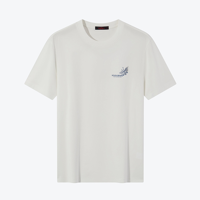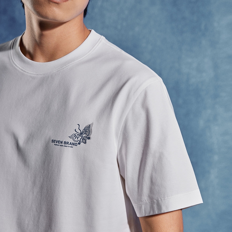 【非遗苗绣蝴蝶妈妈系列】柒牌短袖T恤男夏季薄款圆领透气体恤潮