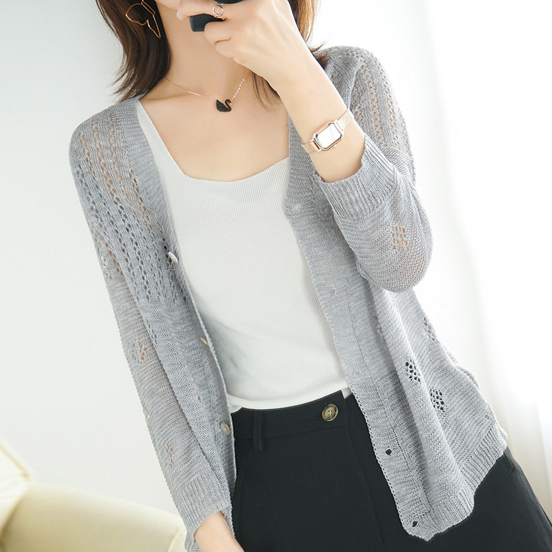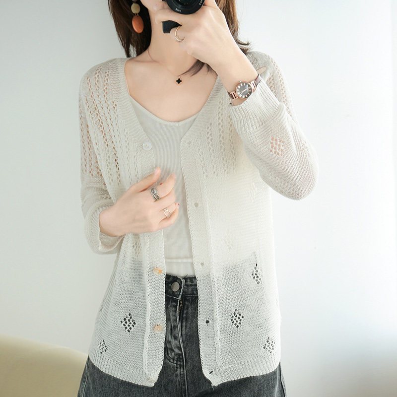 防晒衣女短款外搭夏季外套新款镂空棉麻冰丝针织空调衫薄款开衫