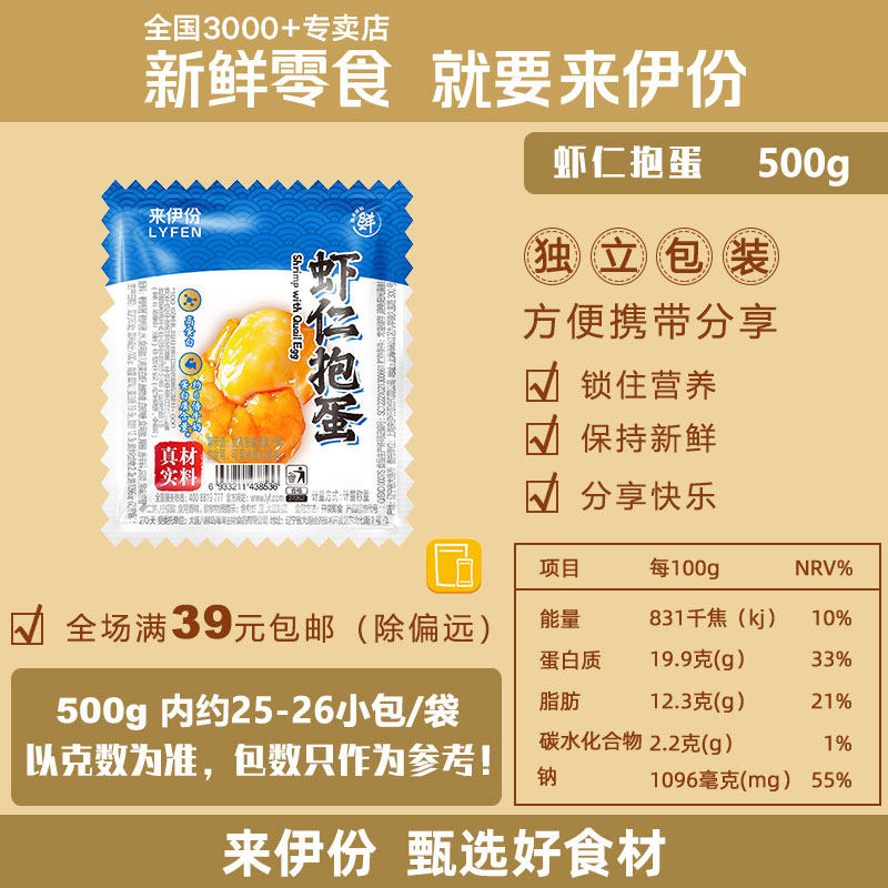 来伊份虾仁抱蛋500g鹌鹑蛋海味水产休闲办公零食高蛋白小吃解馋