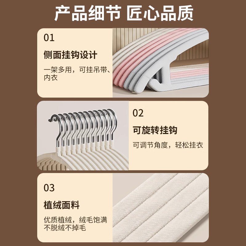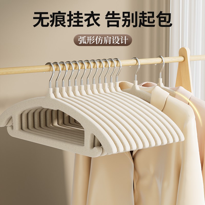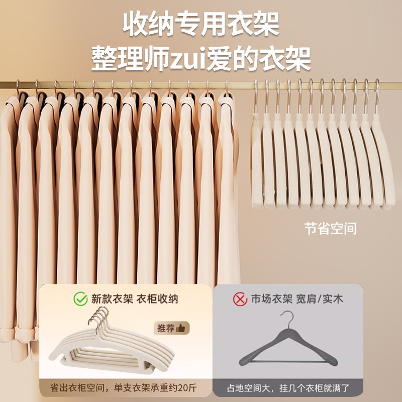 植绒衣架家用挂衣无痕防滑防肩角短颈F晾衣架整理师专用省空间衣