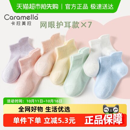 caramella女童袜子夏薄款男童纯棉袜a类网眼儿童宝宝短袜护耳款