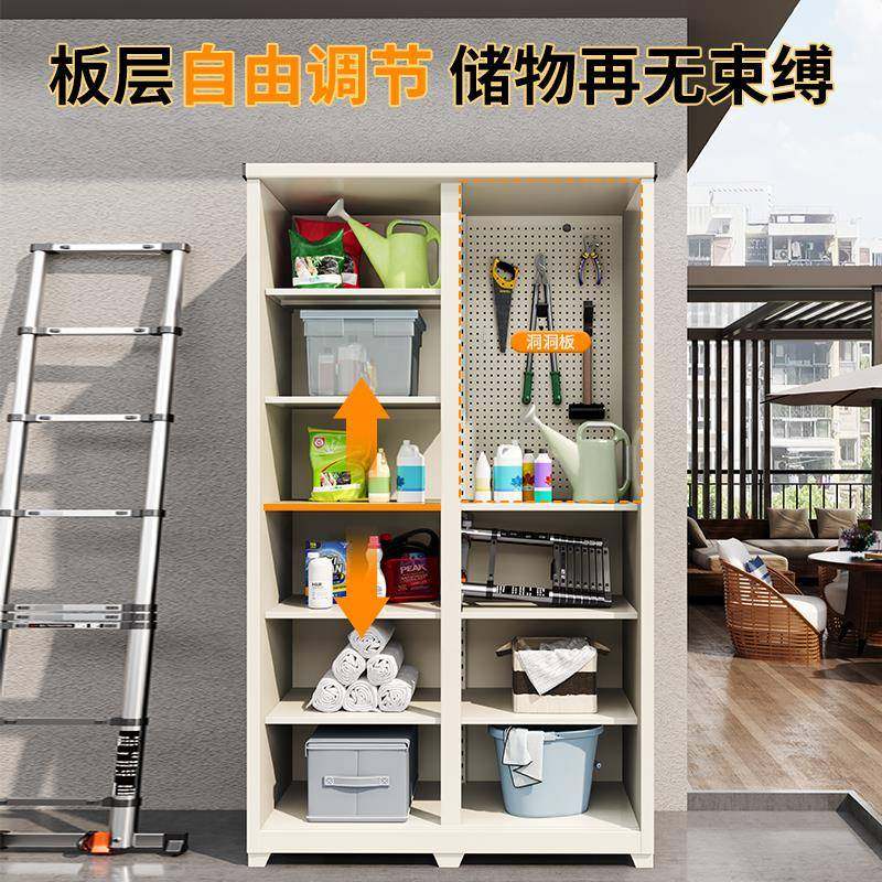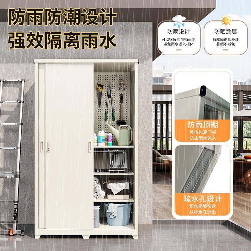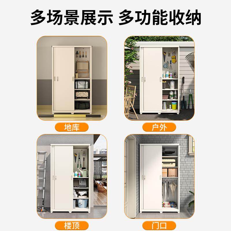 庭院杂物柜收纳柜防水防晒阳台靠墙收纳柜置物柜专用拉门铁皮柜
