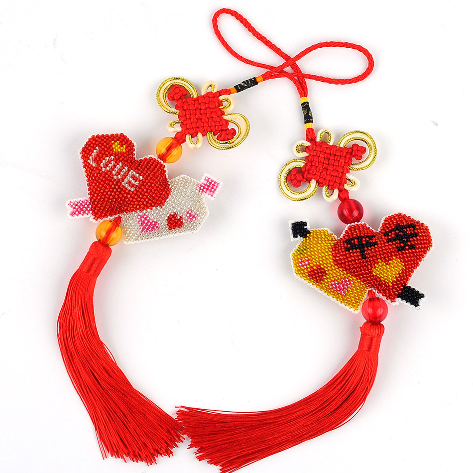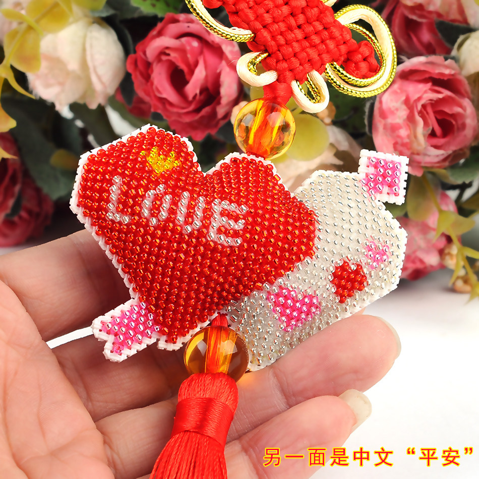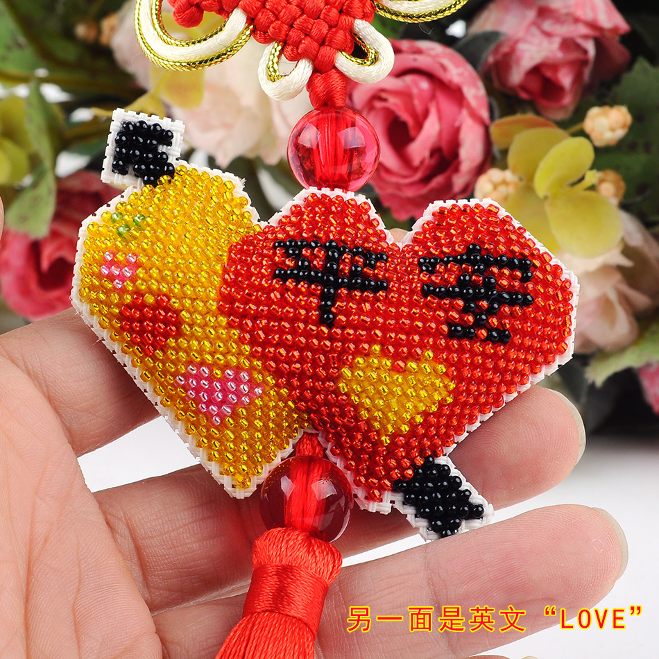 心系平安双爱心丘比特箭爱的告白双面绣印花珠绣挂件平安符love红