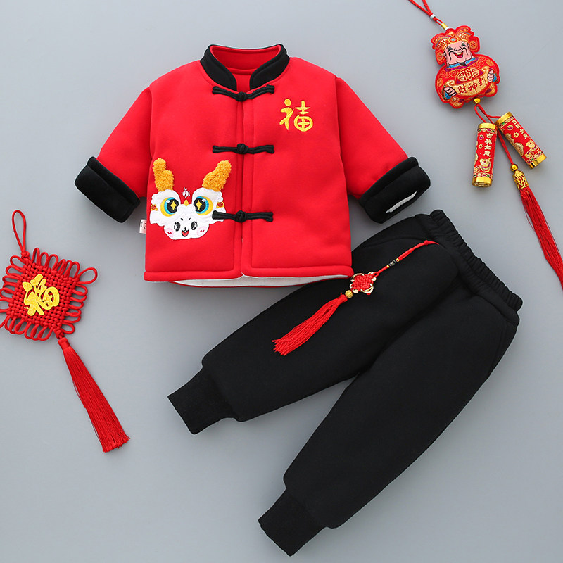 男宝宝拜年服棉衣冬季套装民族风喜庆过年服周岁礼服婴儿衣服唐装